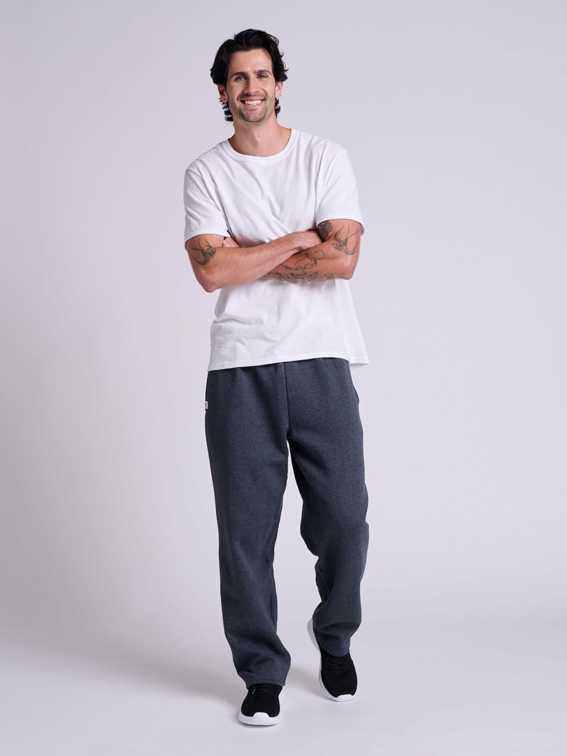 Russell Athletic Men’s Dri Power Fleece Open Bottom Sweatpants with Pockets, Relaxed Fit, Moisture Wicking(Oxford)