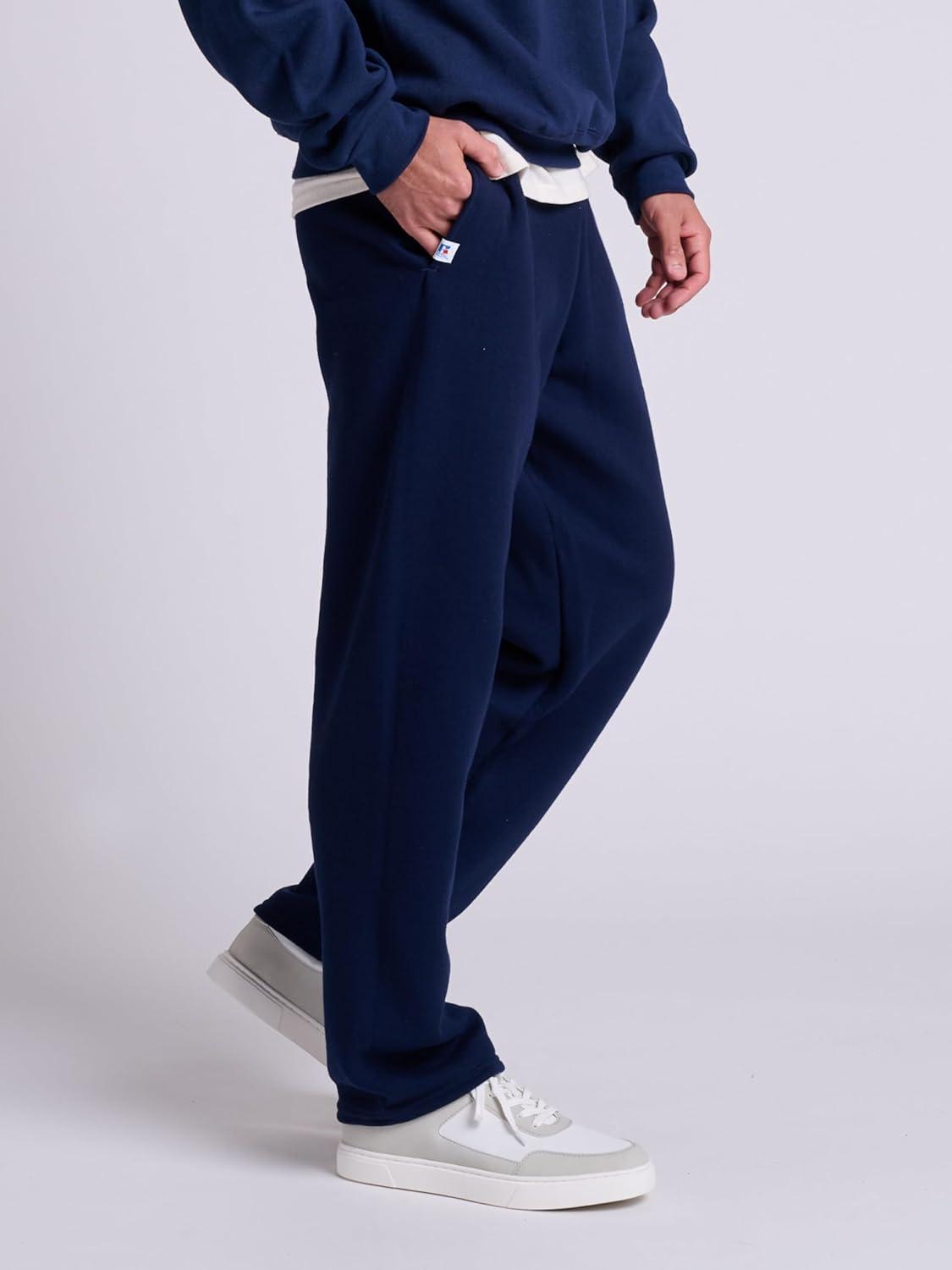 Russell Athletic Men’s Dri Power Fleece Open Bottom Sweatpants with Pockets, Relaxed Fit, Moisture Wicking(Navy)
