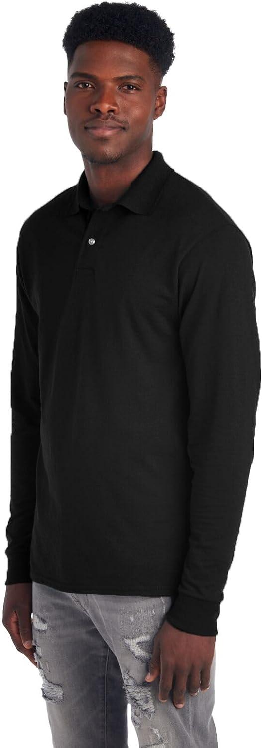 Jerzees Men’s Long Sleeve Polo Shirts, Cotton Blend, Two Button Closure, Regular Fit, Sizes S-2x(Black – Dri-power)