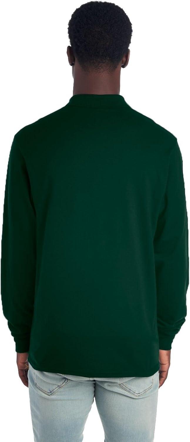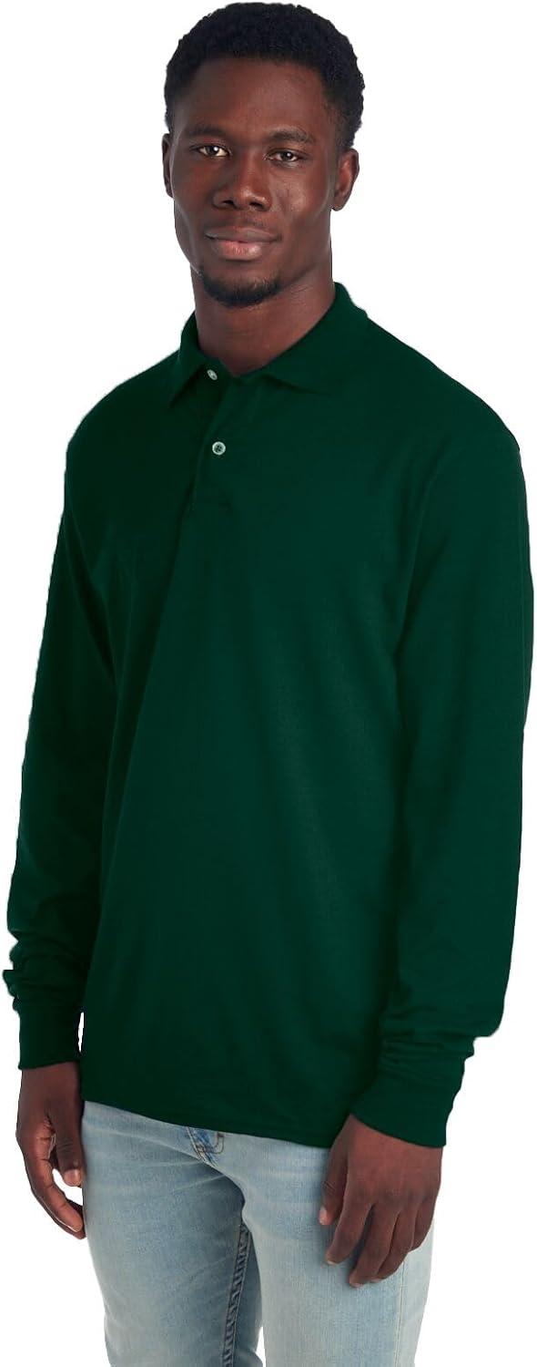 Jerzees Men’s Long Sleeve Polo Shirts, Cotton Blend, Two Button Closure, Regular Fit, Sizes S-2x(Forest Green)