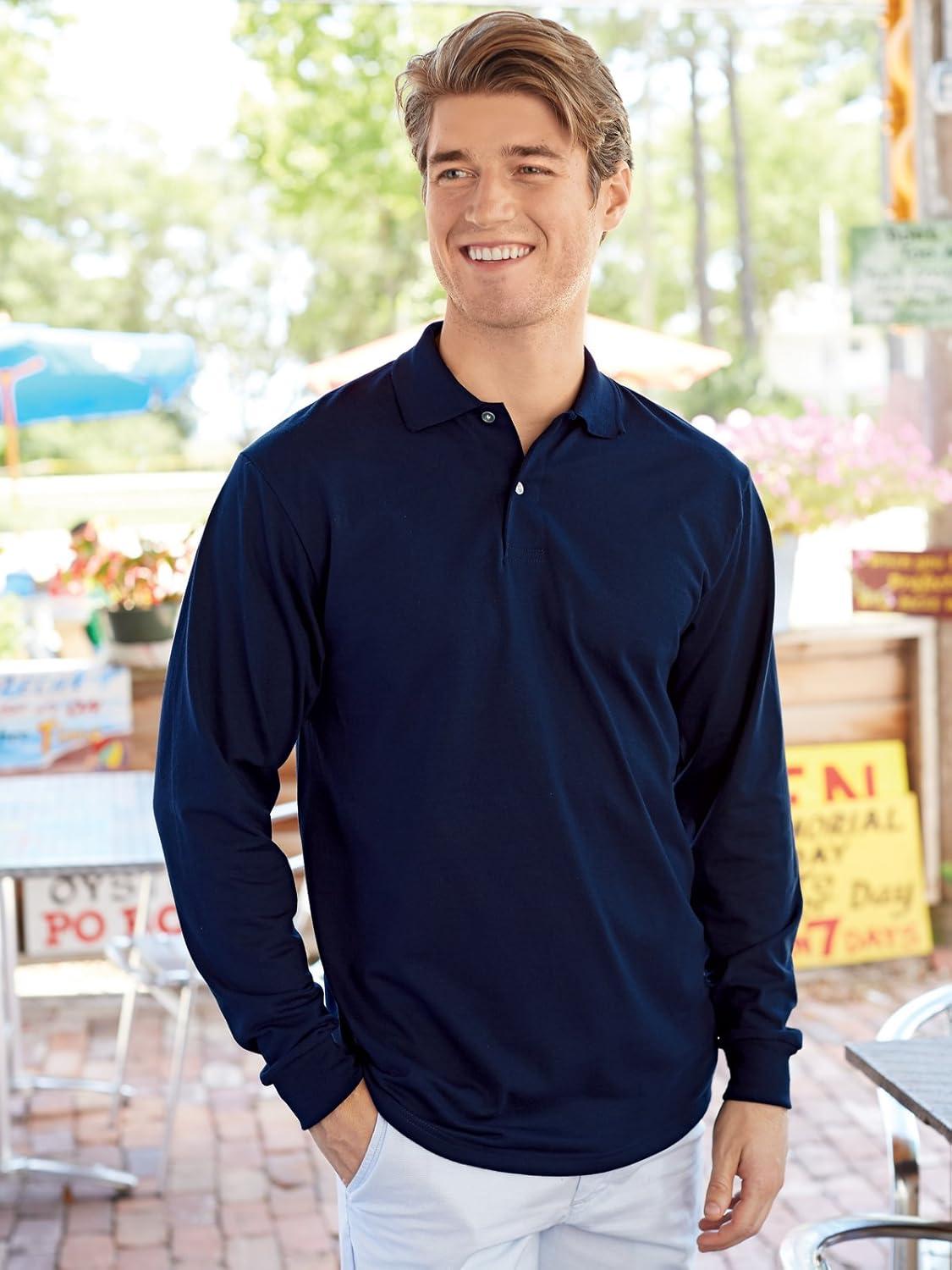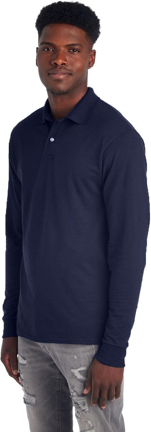 Jerzees Men’s Long Sleeve Polo Shirts, Cotton Blend, Two Button Closure, Regular Fit, Sizes S-2x(Jnavy – Dri-power)