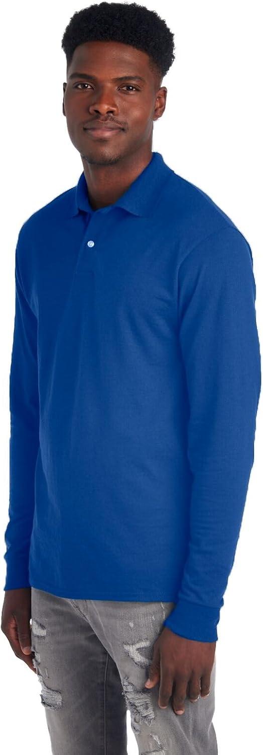 Jerzees Men’s Long Sleeve Polo Shirts, Cotton Blend, Two Button Closure, Regular Fit, Sizes S-2x(Royal – Dri-power)