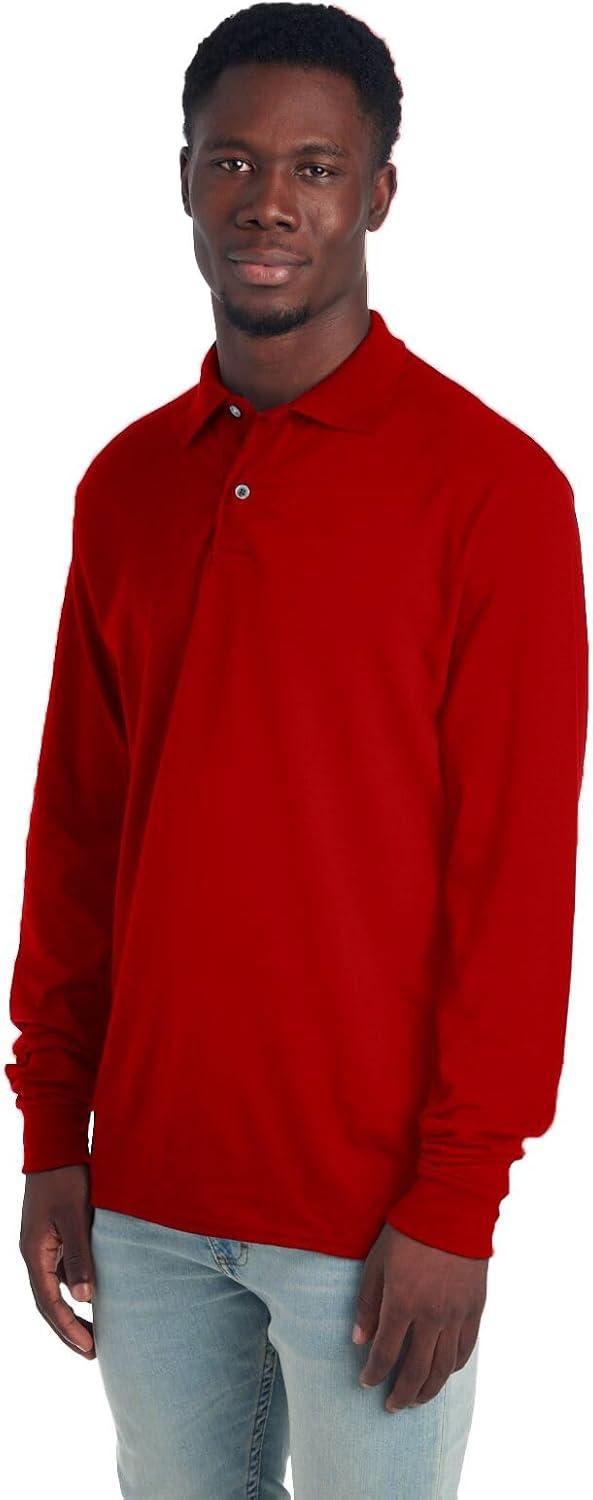 Jerzees Men’s Long Sleeve Polo Shirts, Cotton Blend, Two Button Closure, Regular Fit, Sizes S-2x(True Red)