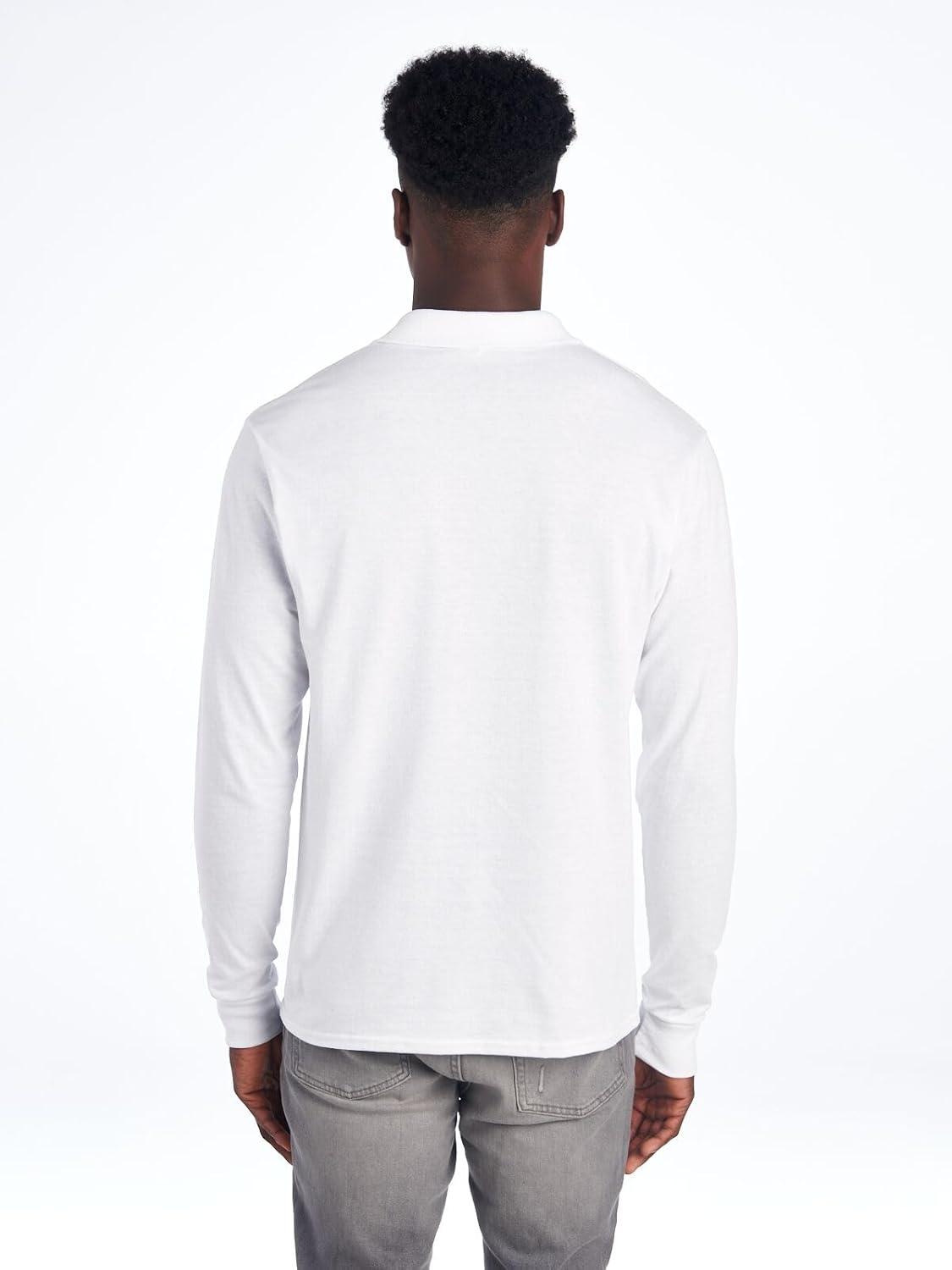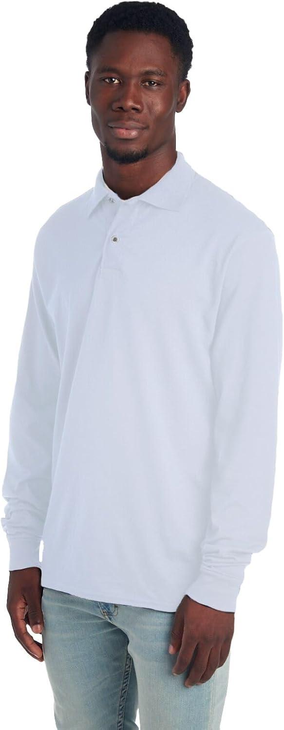 Jerzees Men’s Long Sleeve Polo Shirts, Cotton Blend, Two Button Closure, Regular Fit, Sizes S-2x(White)