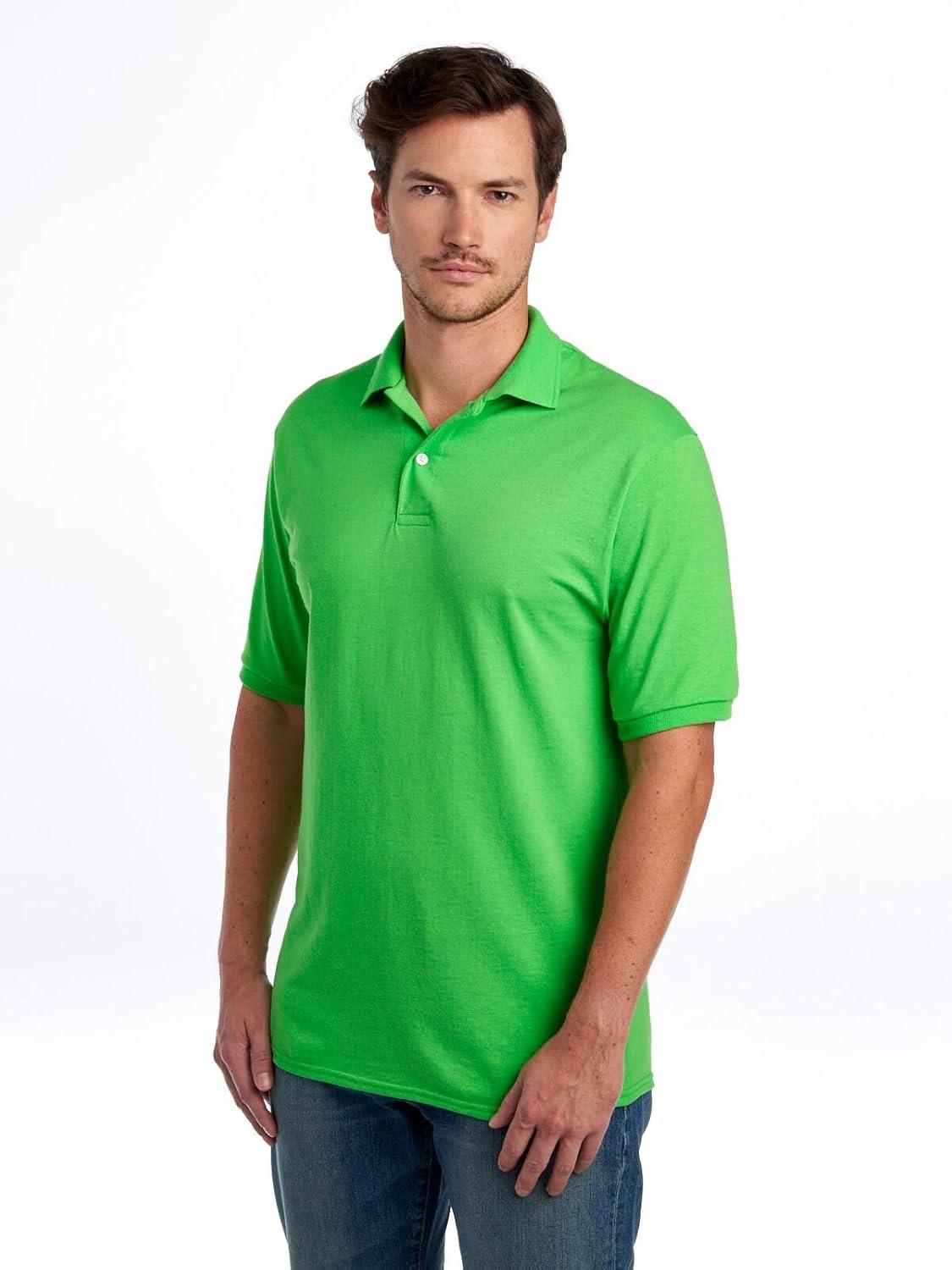 Jerzees Men’s Short Sleeve Polo Shirts, Cotton Blend, Two Button Closure, Regular Fit, Sizes S-5x(Kiwi – Dri-power)