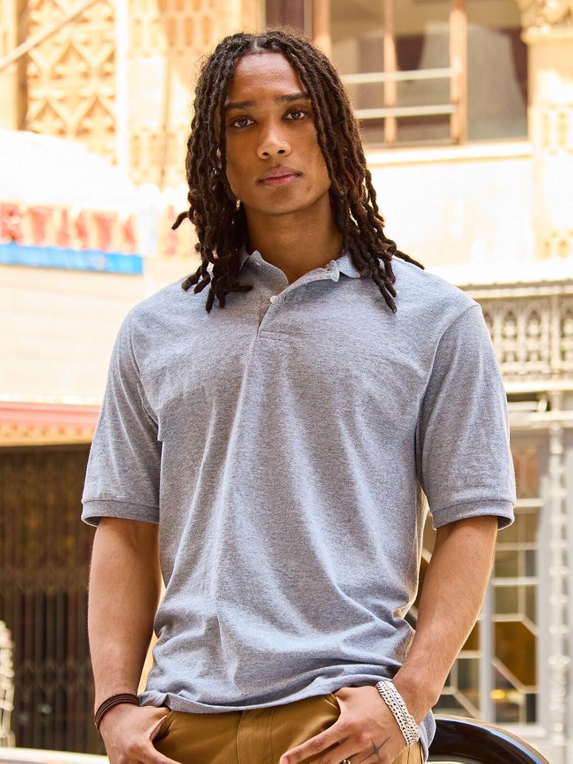Jerzees Men’s Short Sleeve Polo Shirts, Cotton Blend, Two Button Closure, Regular Fit, Sizes S-5x(Oxford – Dri-power)