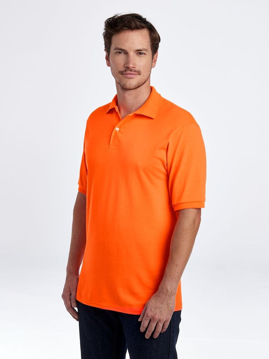 Jerzees Men’s Short Sleeve Polo Shirts, Cotton Blend, Two Button Closure, Regular Fit, Sizes S-5x(Safety Orange – Dri-power)