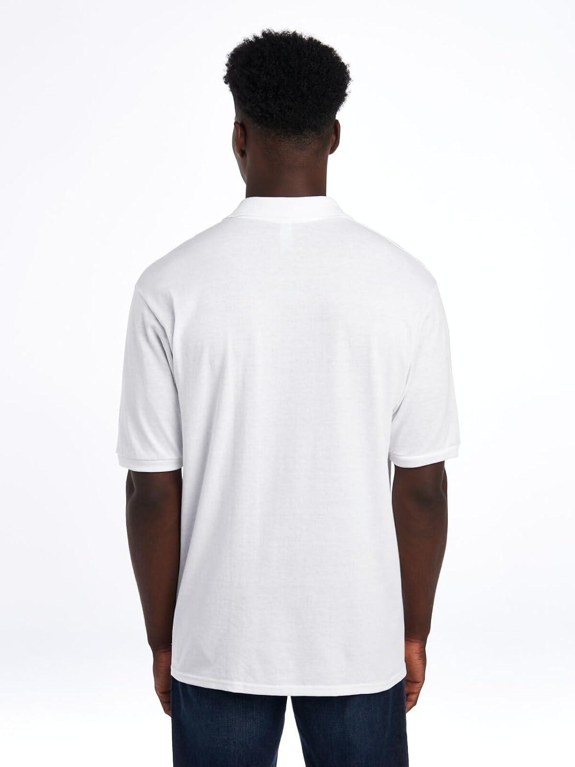 • Jerzees Men’s Short Sleeve Polo Shirts, Cotton Blend, Two Button Closure, Regular Fit, Sizes S-5x(White – Dri-power)