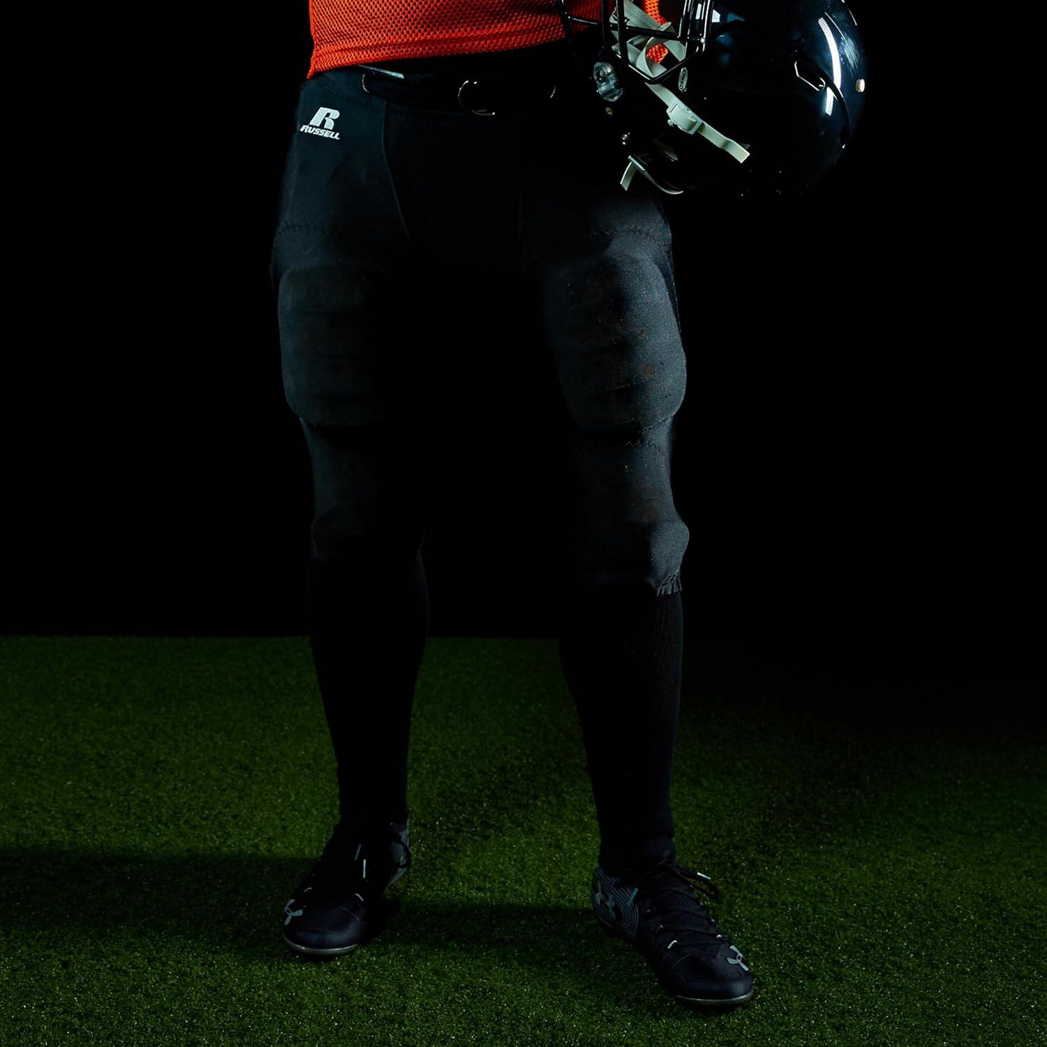 Mens Russell Athletic Mens Integrated 7-Piece Pad Football Pant – Premium Padded Football Pants for Adults(Black)