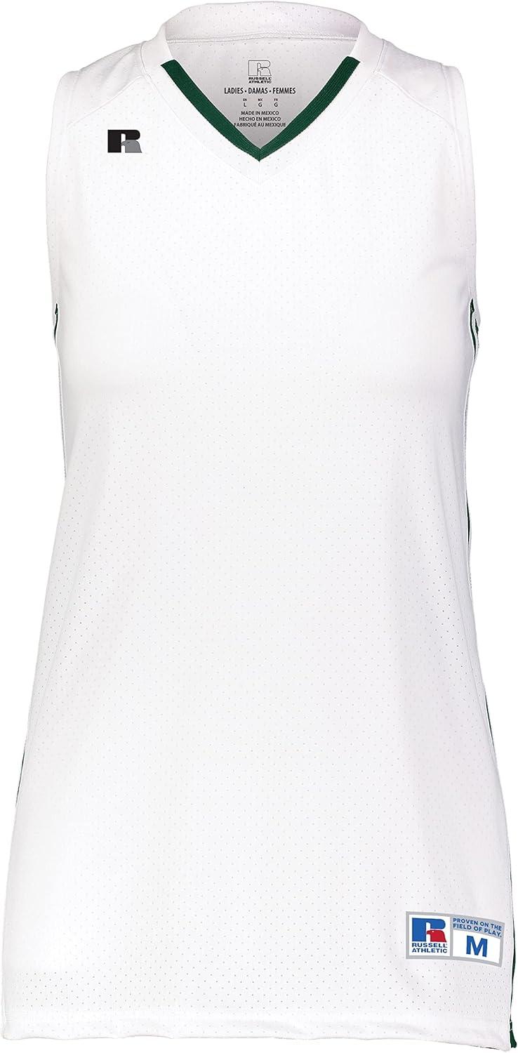 Russell Athletic Women’s Ladies Legacy Basketball Jersey(White/Dark Green)