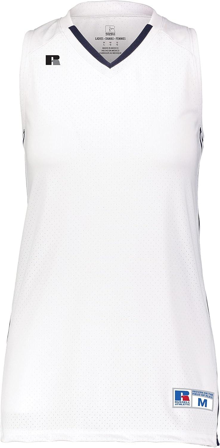 Russell Athletic Women’s Ladies Legacy Basketball Jersey(White/Navy)