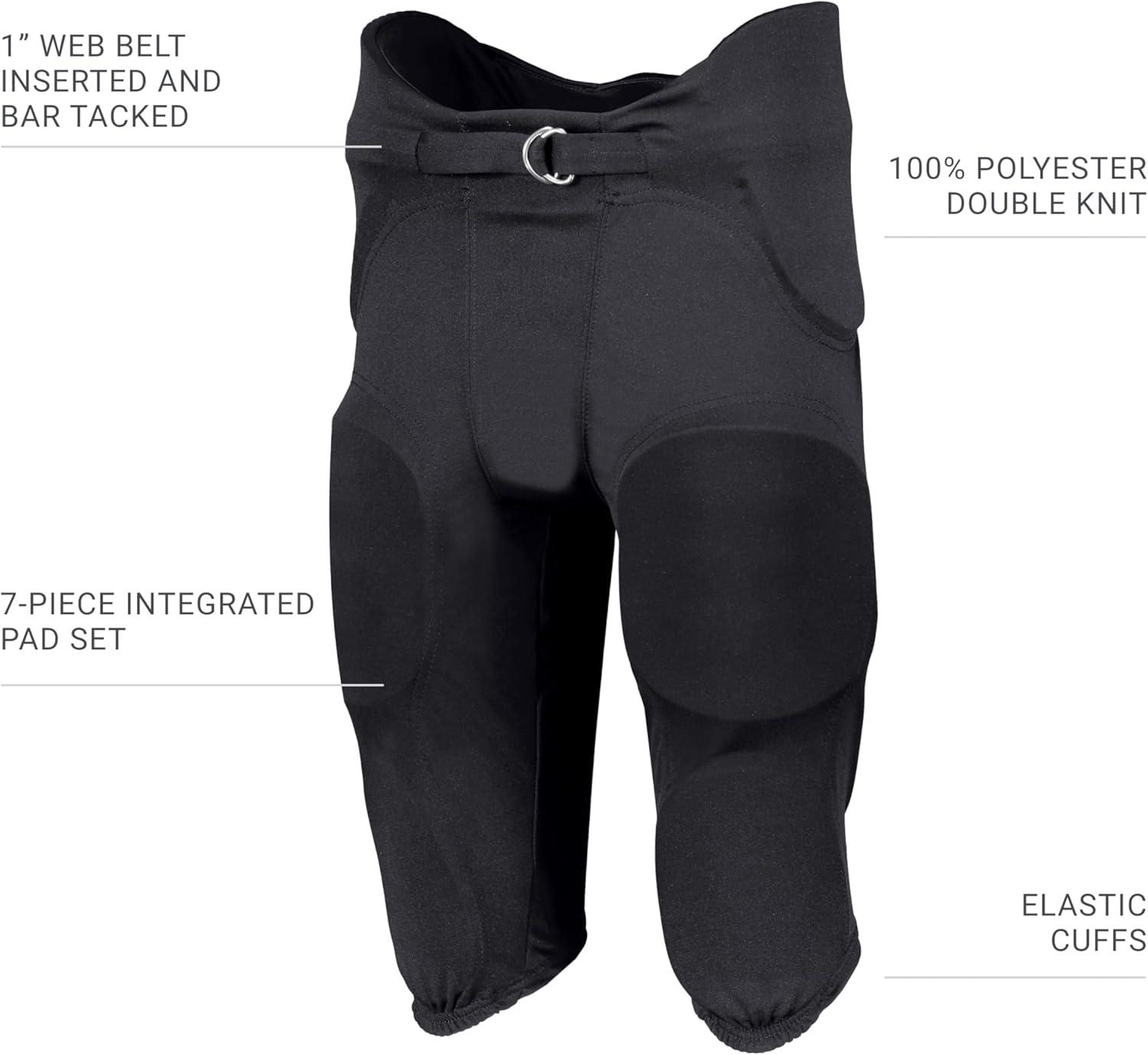 Mens Russell Athletic Mens Integrated 7-Piece Pad Football Pant – Premium Padded Football Pants for Adults(Black)
