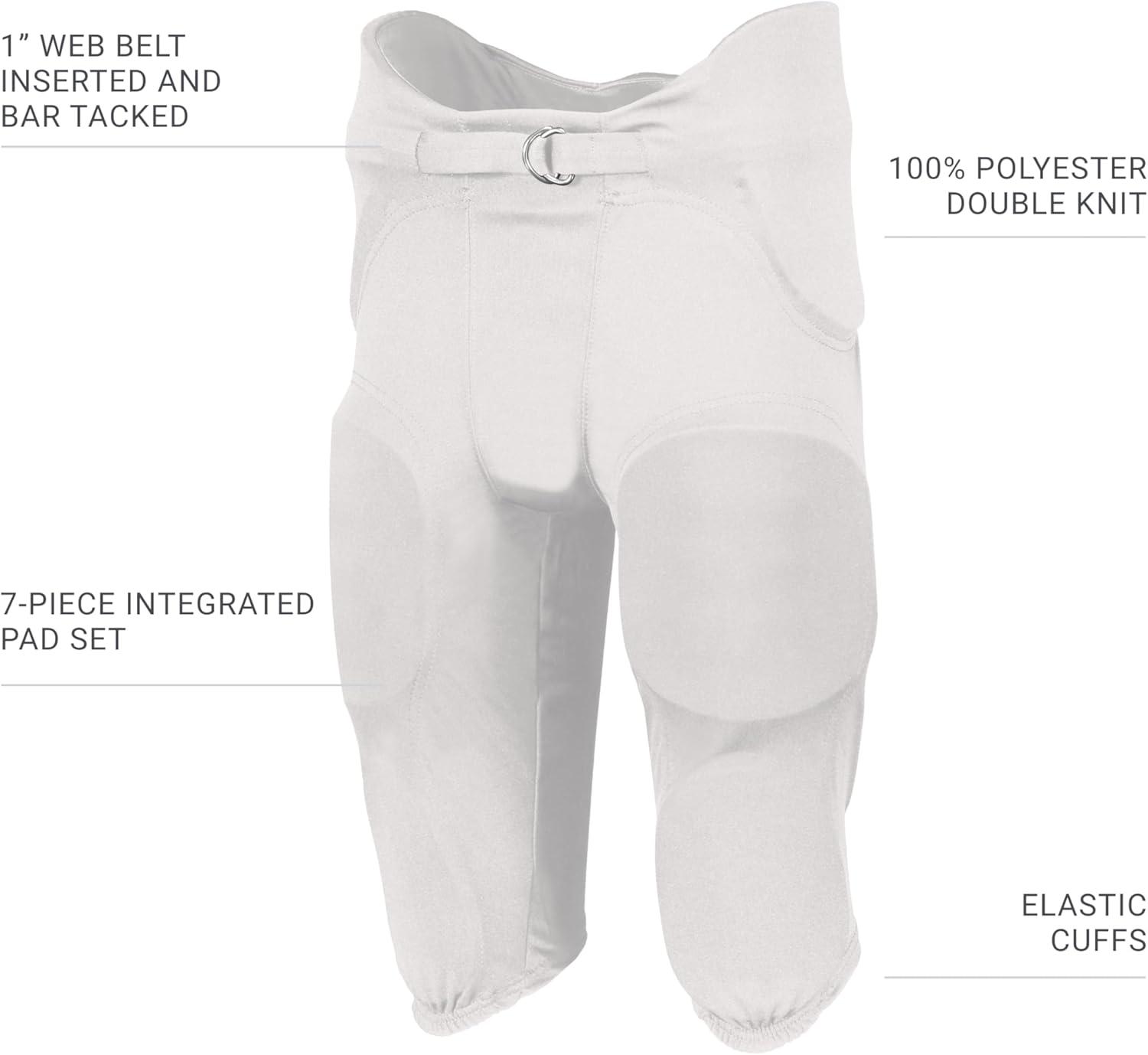 Augusta Sportswear Men’s Russell Athletic Integrated 7-Piece Premium Padded Football Pants for Adults(White)