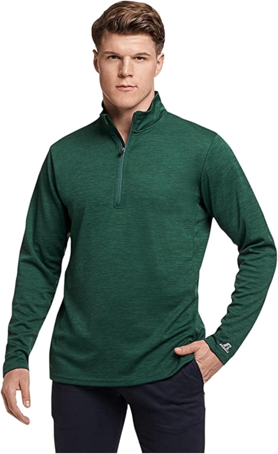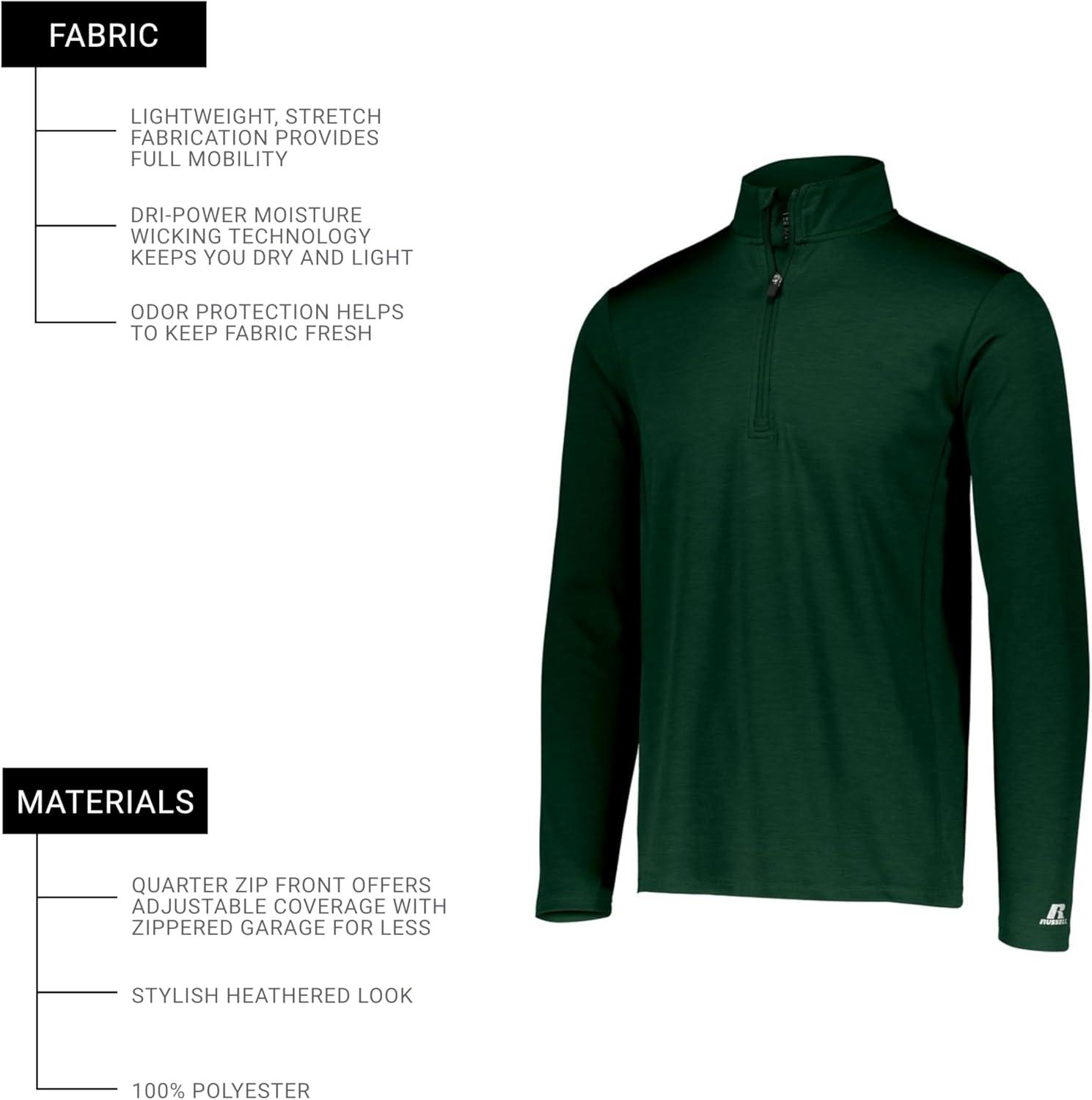 Russell Athletic Dri-power Lightweight 1/4 Zip Pullover Outerwear(Dark Green)