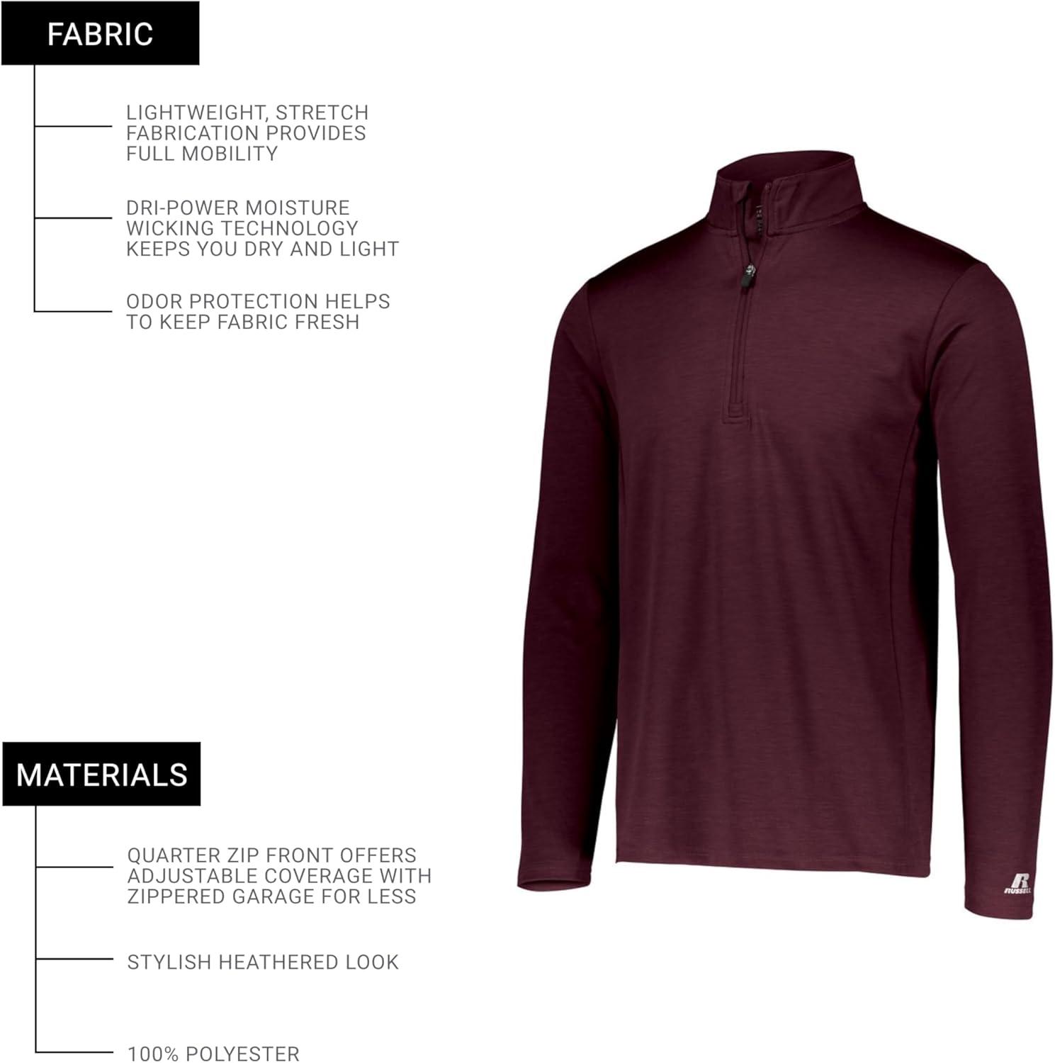 Russell Athletic Dri-power Lightweight 1/4 Zip Pullover Outerwear(Maroon)