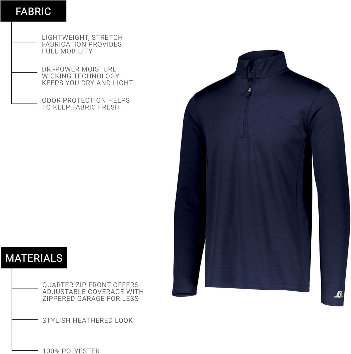 Russell Athletic Dri-power Lightweight 1/4 Zip Pullover Outerwear(Stealth)