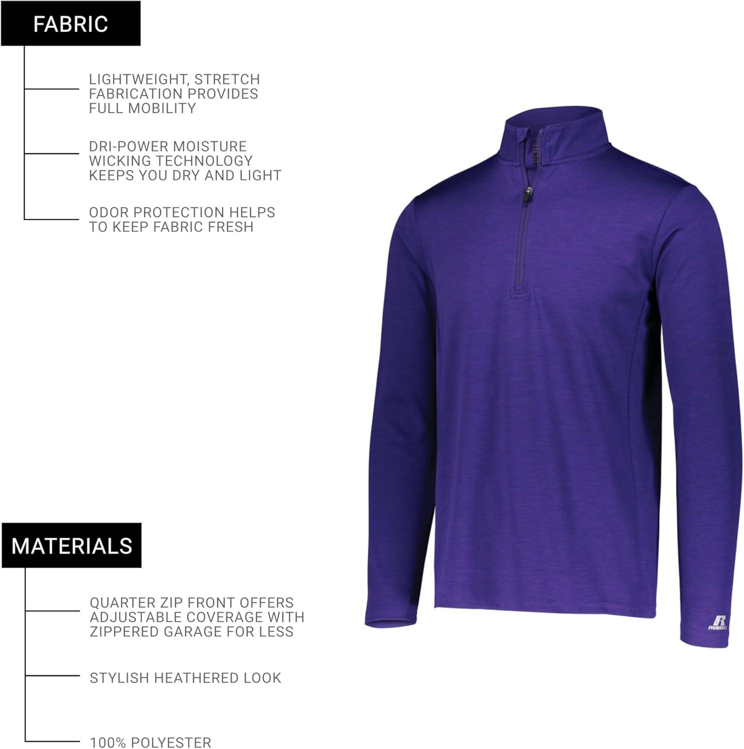 Russell Athletic Dri-power Lightweight 1/4 Zip Pullover Outerwear(Purple)