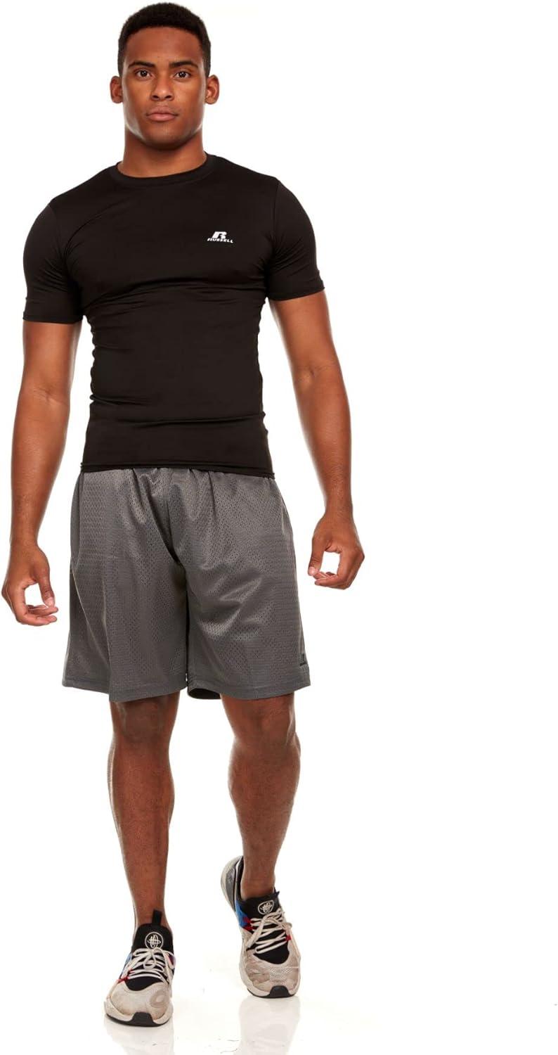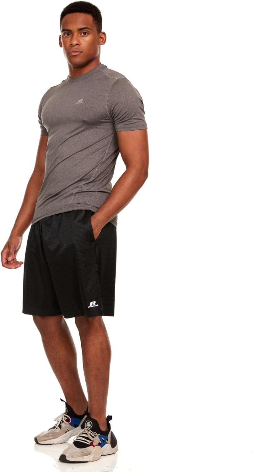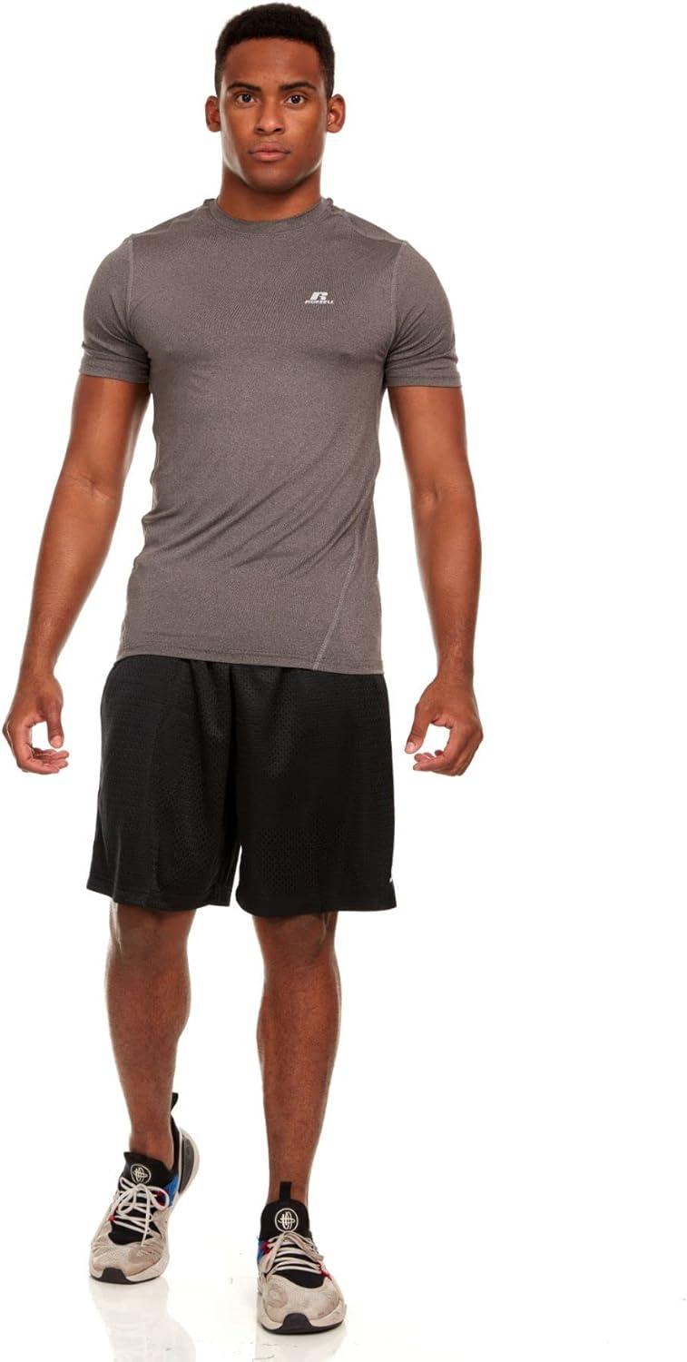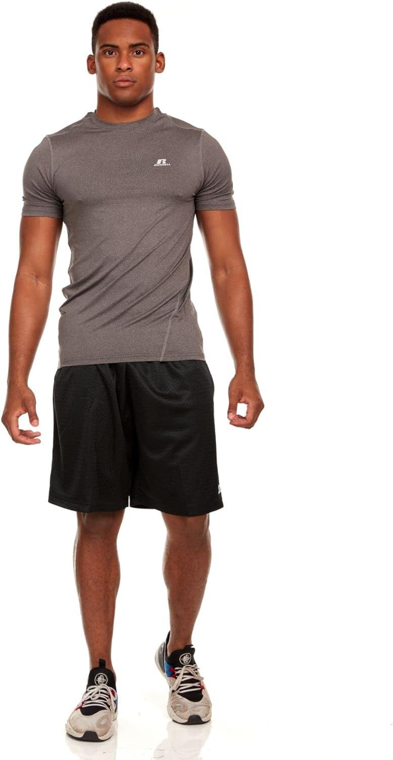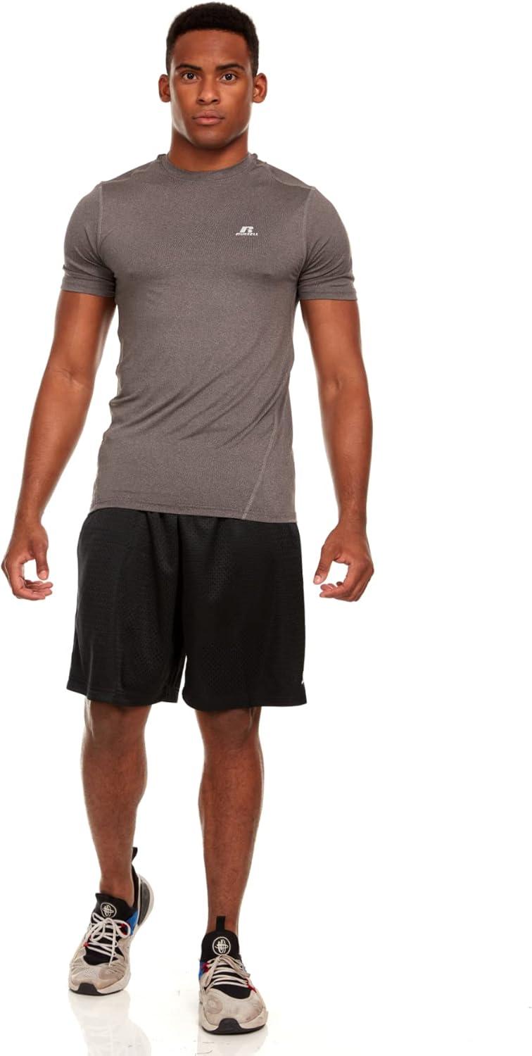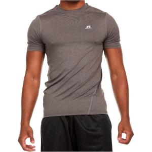 Russell Athletic Mens Fitted Compression Crew Neck Short Sleeve T Shirt, Gym Training Top(Black Heather)