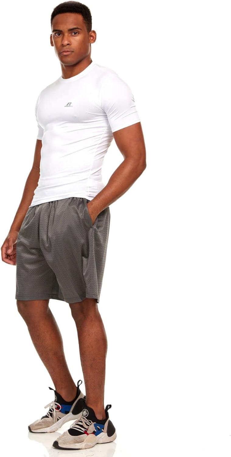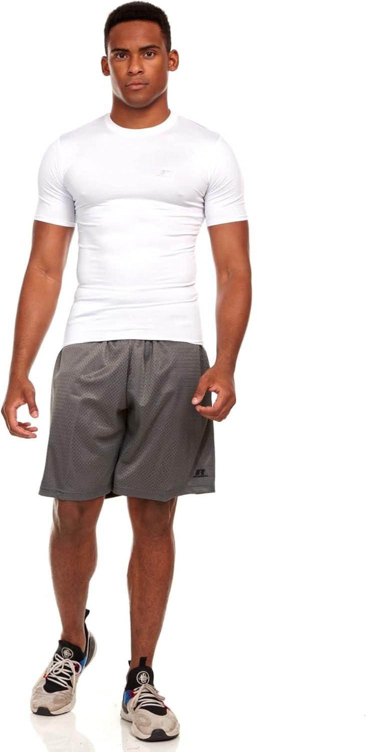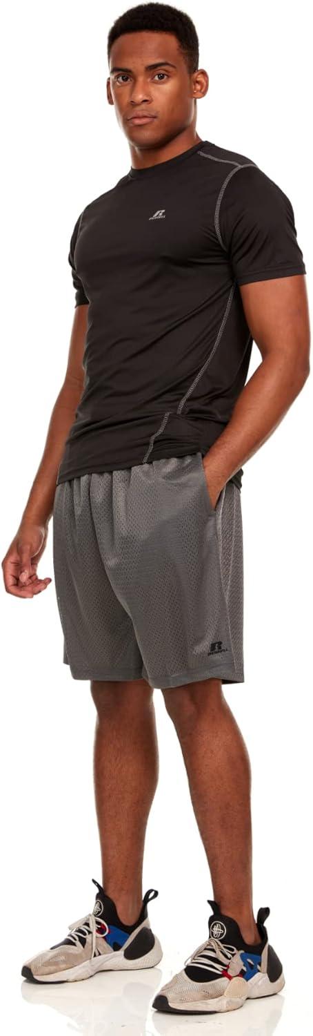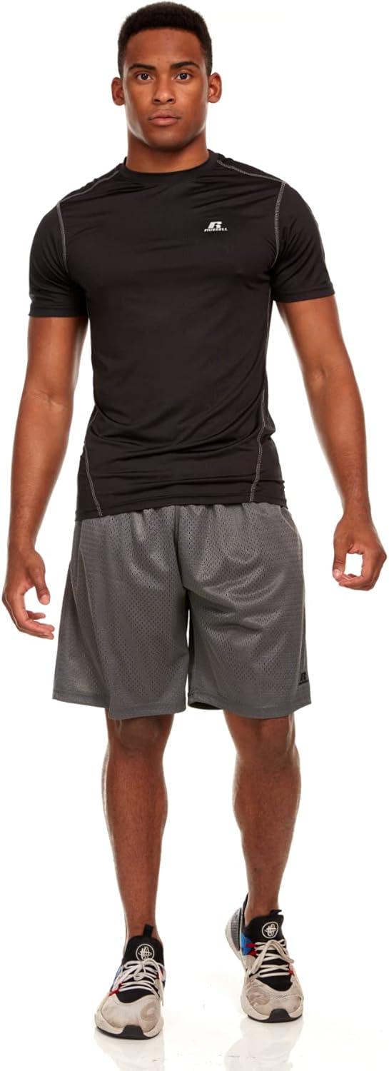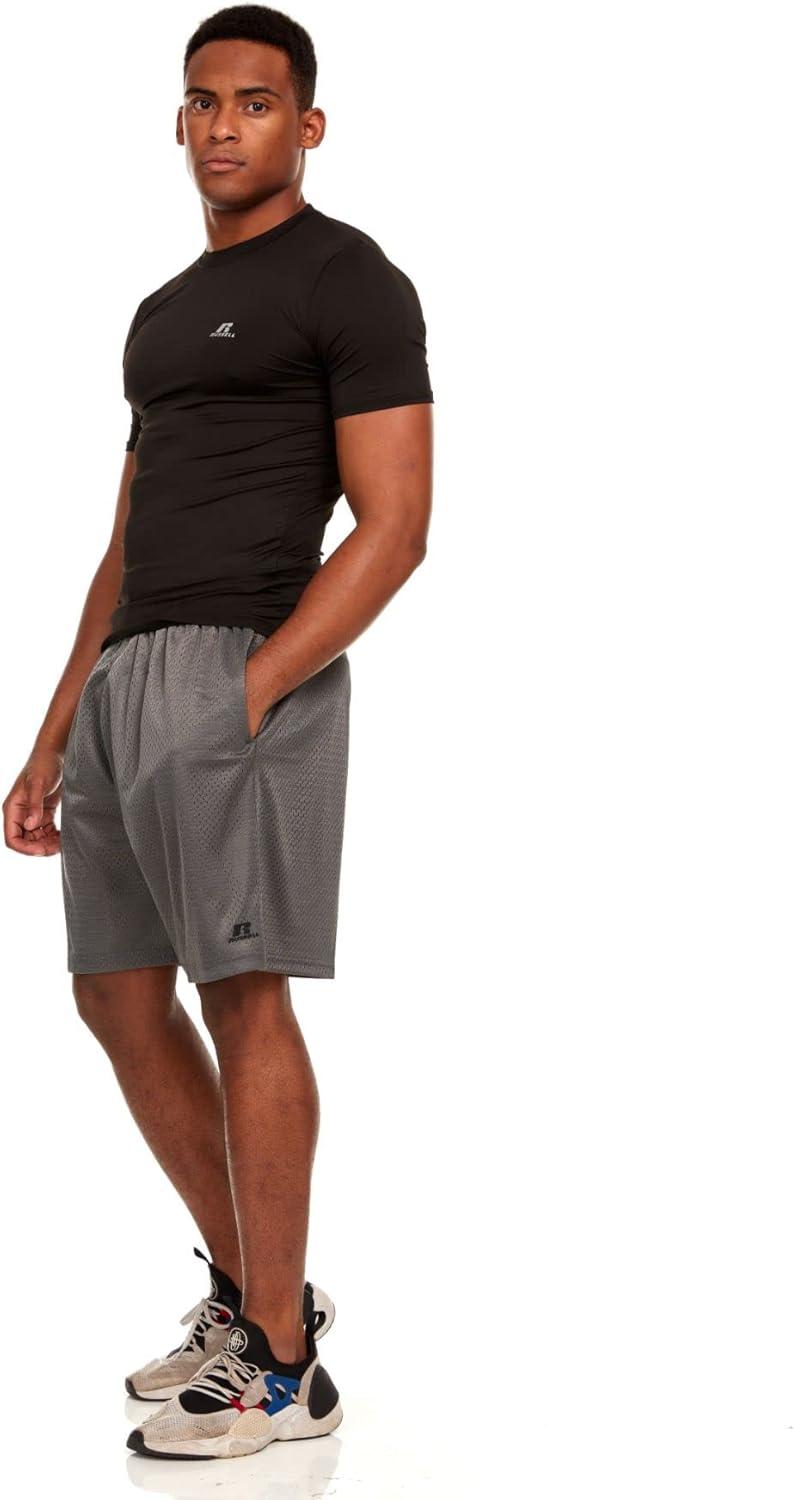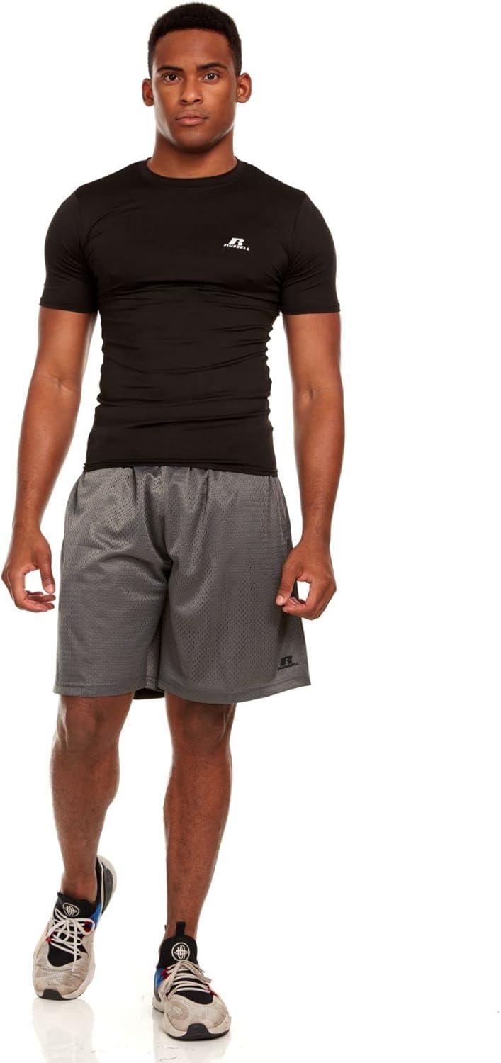 Russell Athletic Mens Fitted Compression Crew Neck Short Sleeve T Shirt, Gym Training Top(Black Heather)