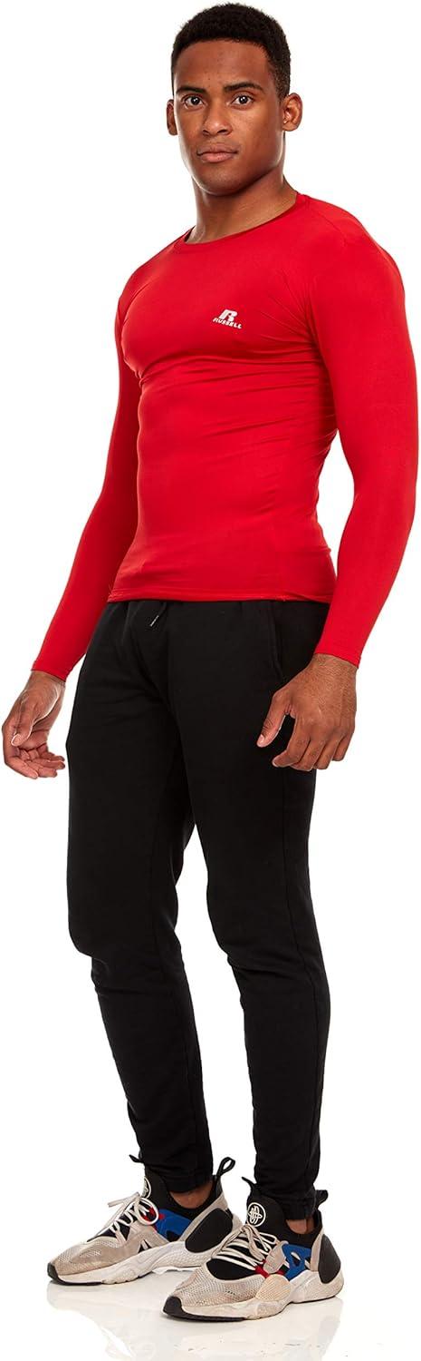 Russell Athletic Men’s Long-Sleeve Compression Top Lightweight Compression Shirts for Men Running Athletic Workout(Red)