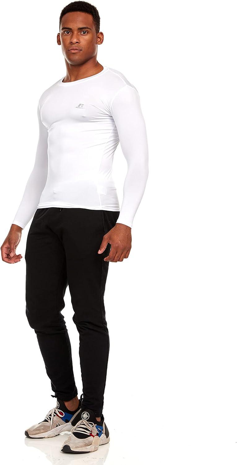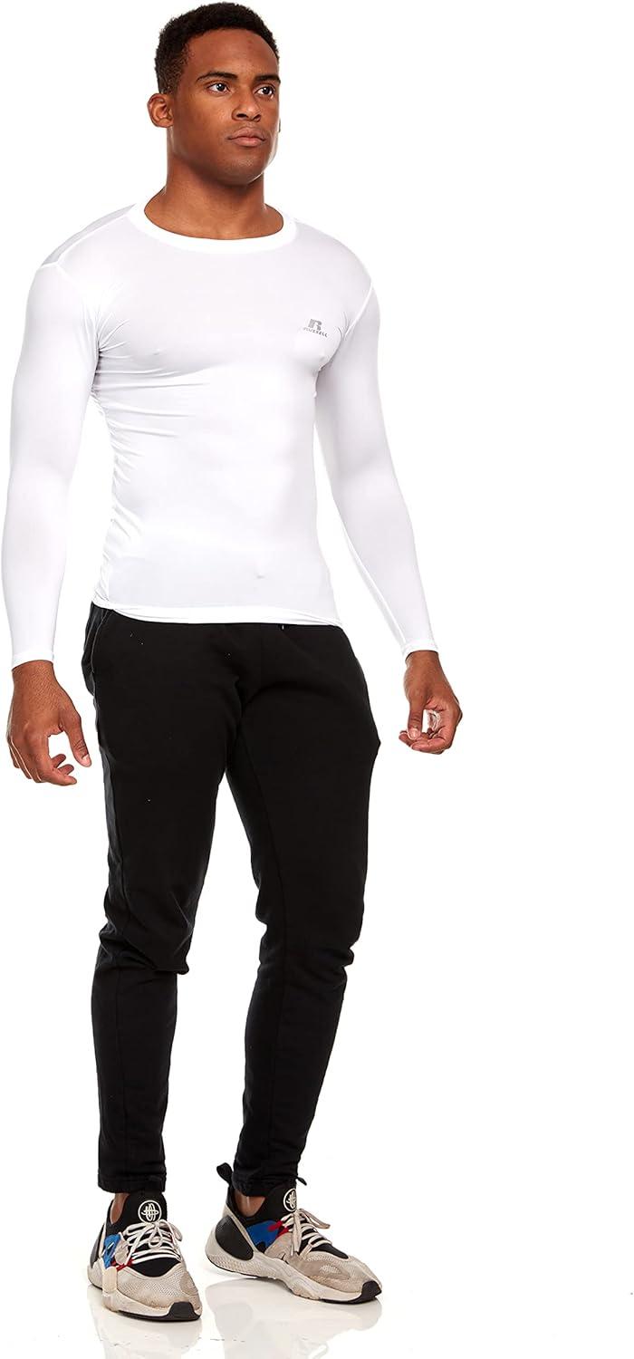 Russell Athletic Men’s Long-Sleeve Compression Top Lightweight Compression Shirts for Men Running Athletic Workout(White)