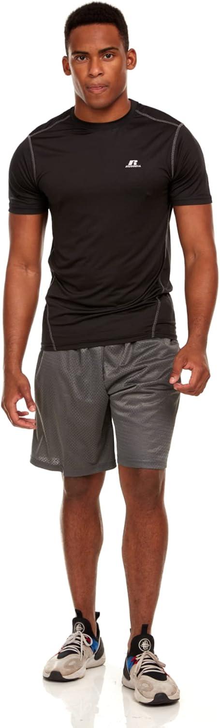 Russell Athletic Mens Fitted Compression Crew Neck Short Sleeve T Shirt, Gym Training Top(Black)