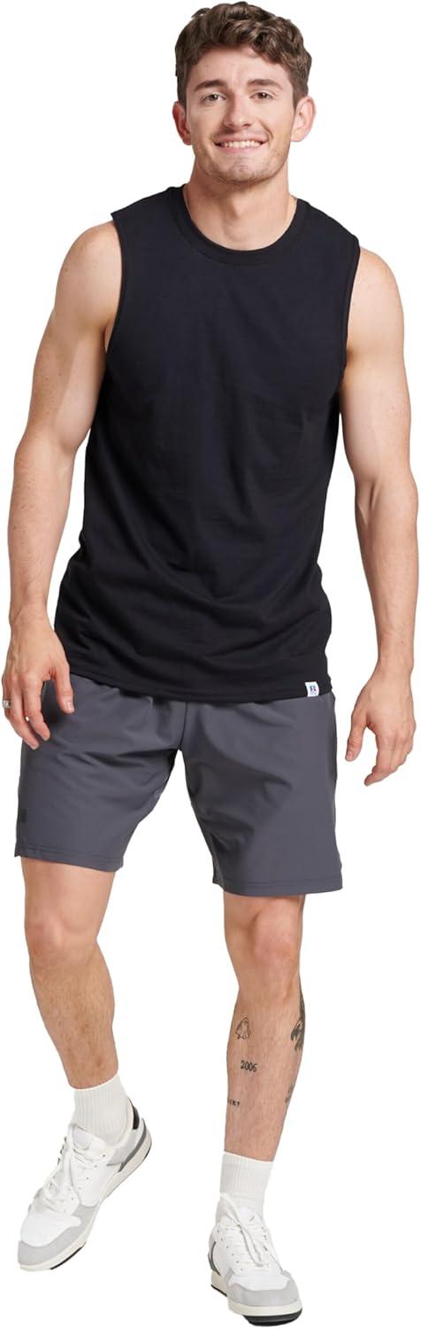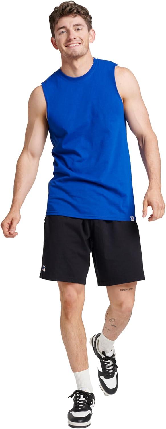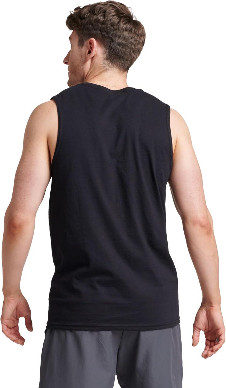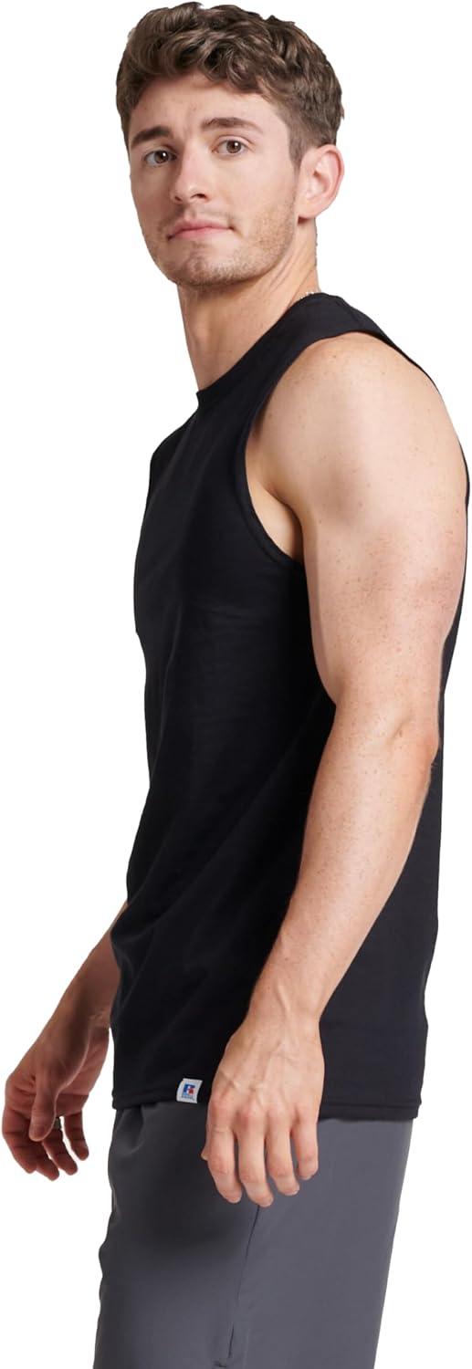 Russell Athletic Men’s Dri-Power Cotton Blend Sleeveless Muscle Shirts, Moisture Wicking Odor Protection UPF 30+, Sizes S-4X(Black)