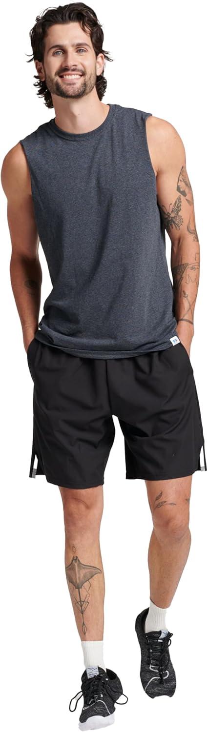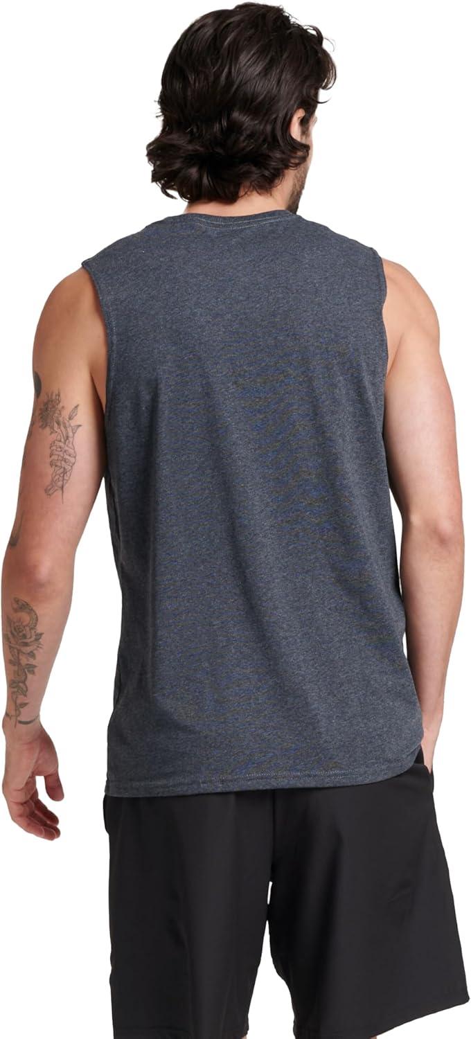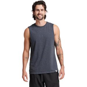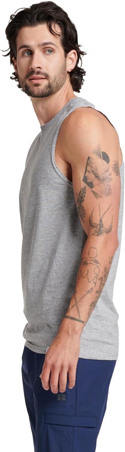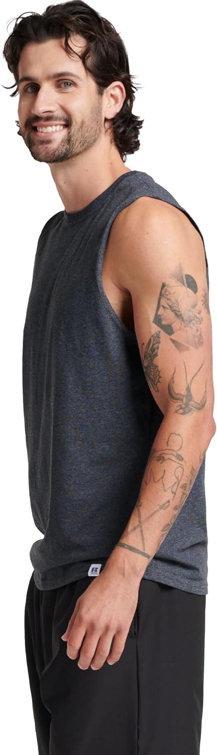 Russell Athletic Men’s Dri-Power Cotton Blend Sleeveless Muscle Shirts, Moisture Wicking Odor Protection UPF 30+, Sizes S-4X(Black Heather)