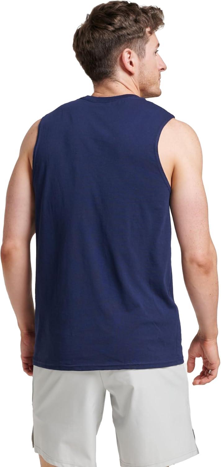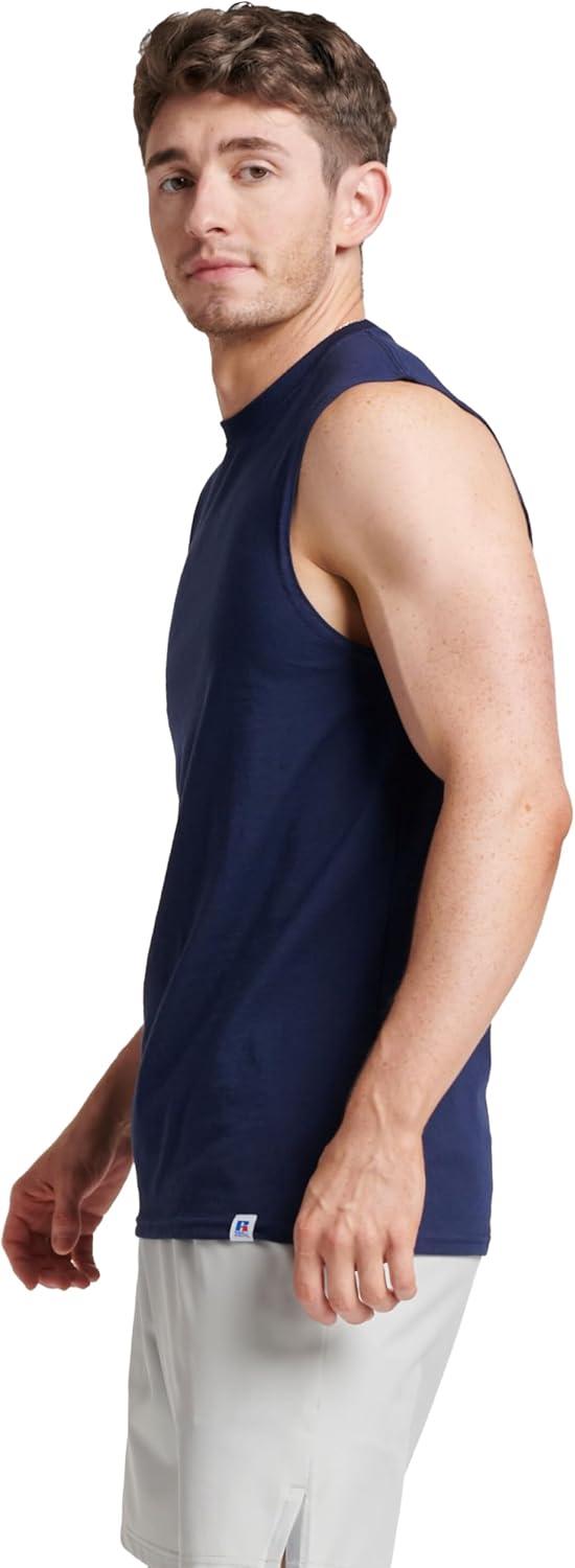 Russell Athletic Men’s Dri-Power Cotton Blend Sleeveless Muscle Shirts, Moisture Wicking Odor Protection UPF 30+, Sizes S-4X(Navy)