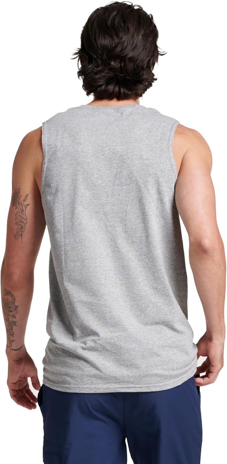 Russell Athletic Men’s Dri-Power Cotton Blend Sleeveless Muscle Shirts, Moisture Wicking Odor Protection UPF 30+, Sizes S-4X(Oxford)