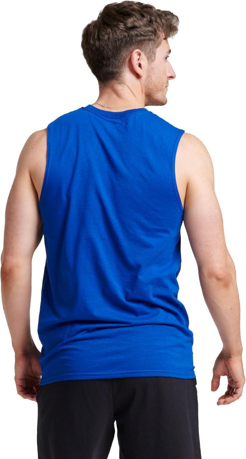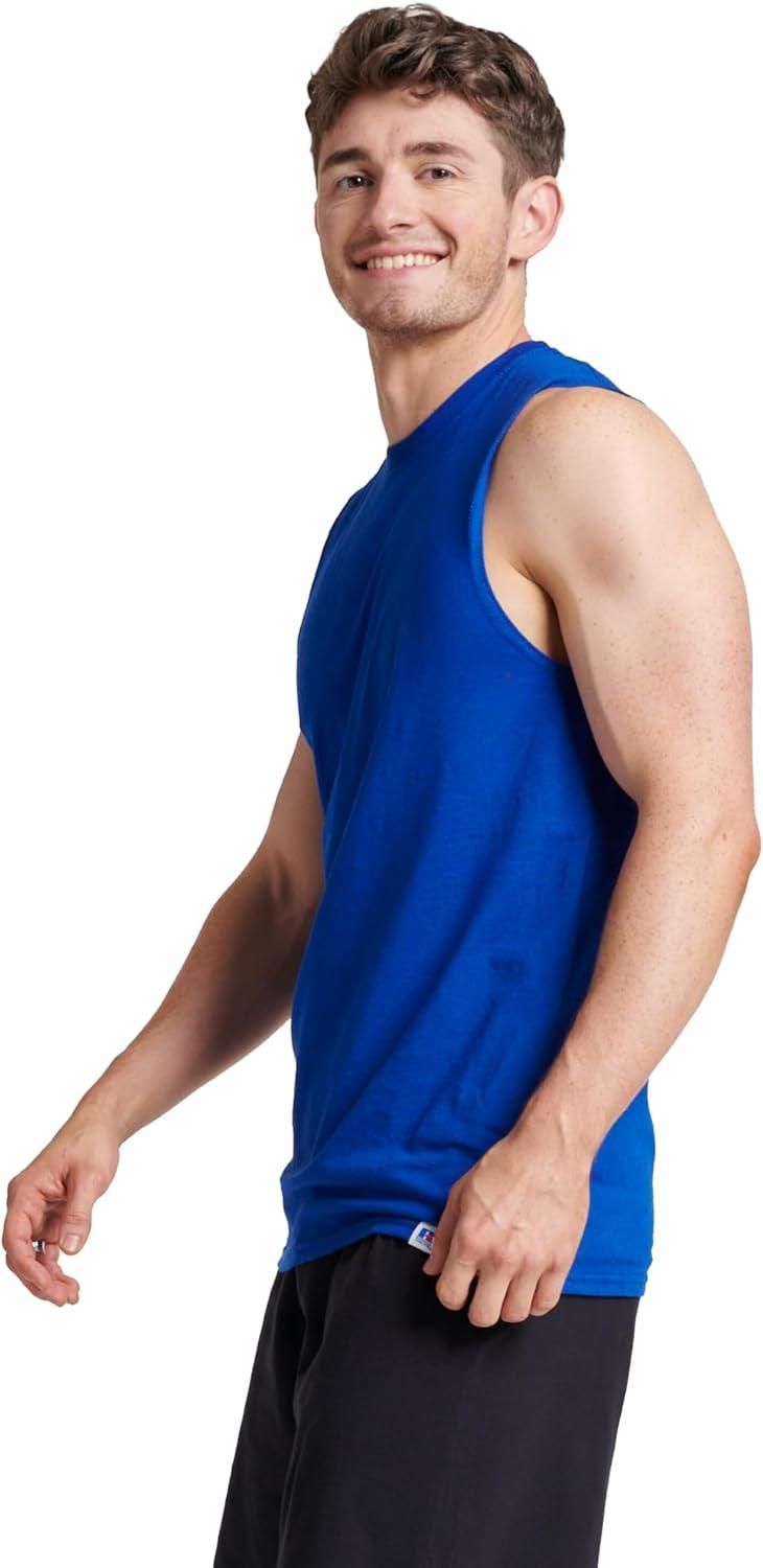 Russell Athletic Men’s Dri-Power Cotton Blend Sleeveless Muscle Shirts, Moisture Wicking Odor Protection UPF 30+, Sizes S-4X(Royal)