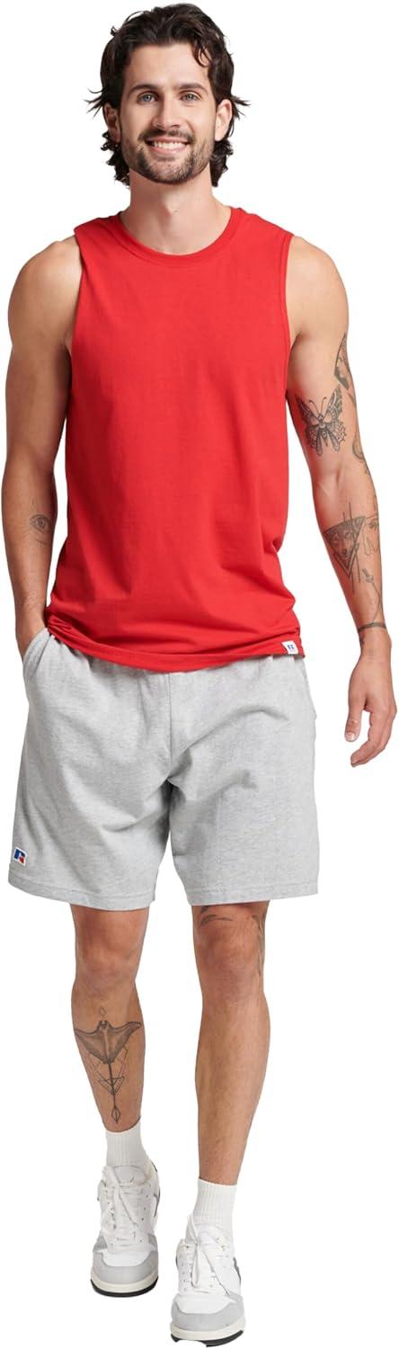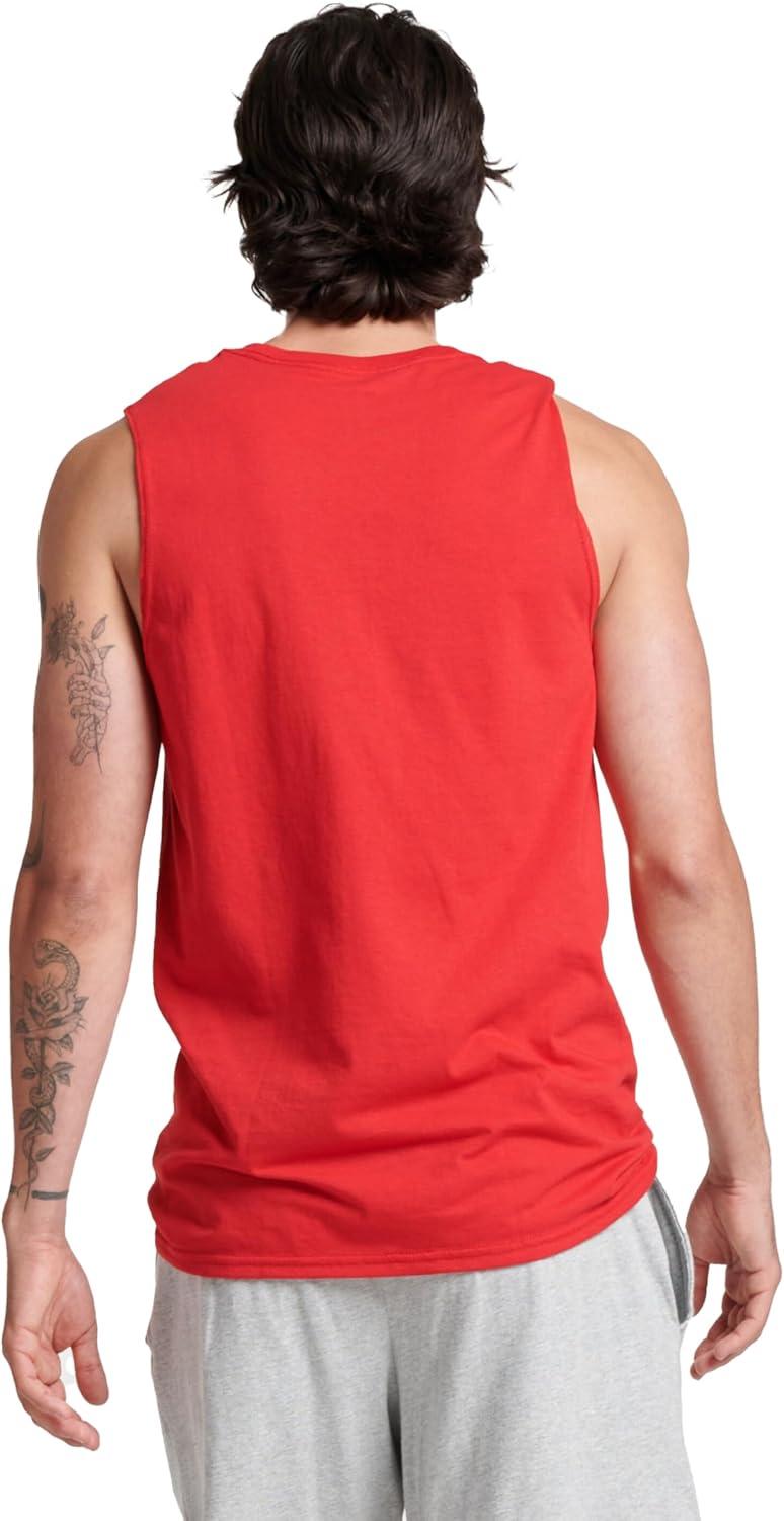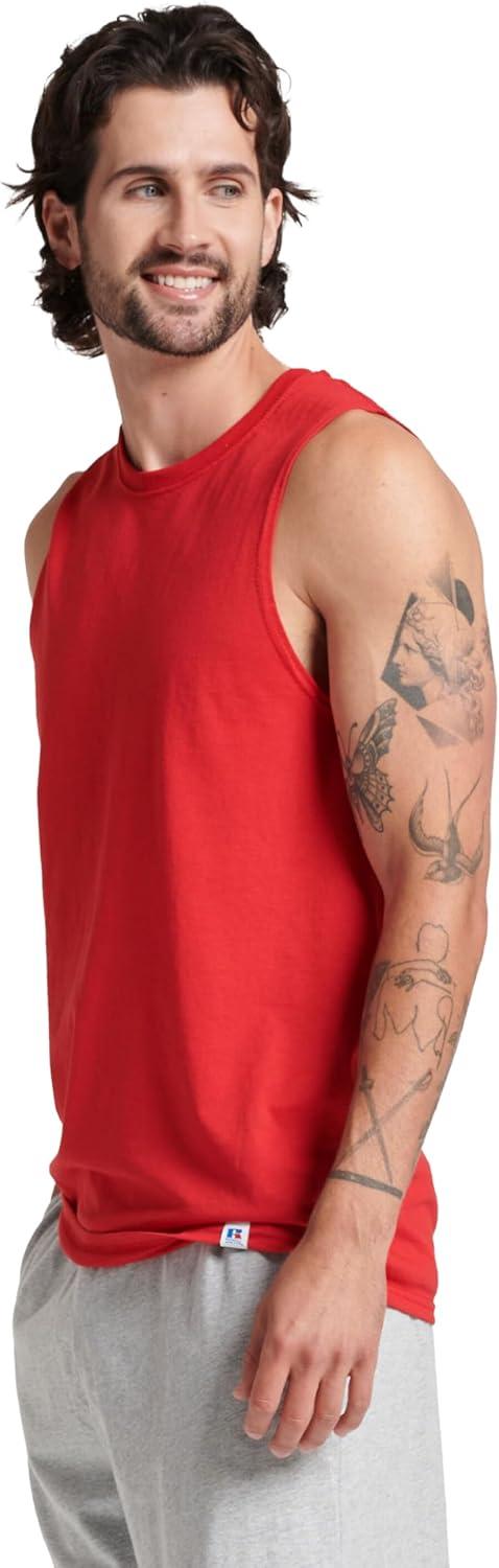 Russell Athletic Men’s Dri-Power Cotton Blend Sleeveless Muscle Shirts, Moisture Wicking Odor Protection UPF 30+, Sizes S-4X(True Red)