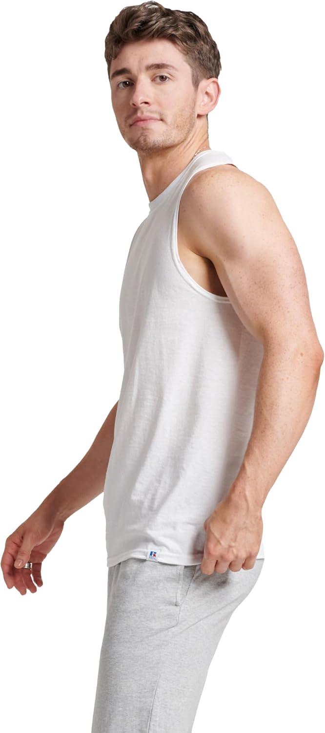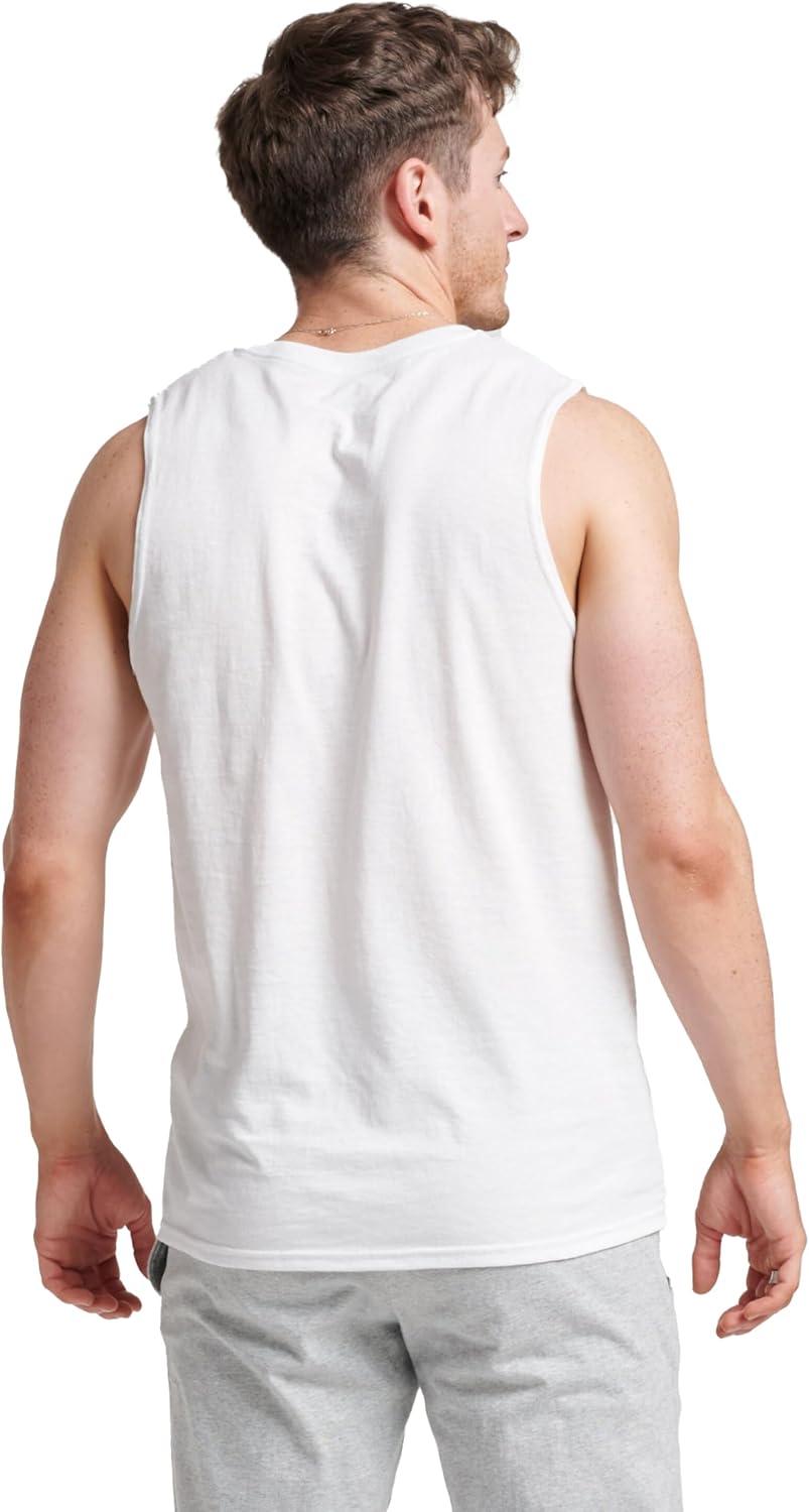 Russell Athletic Men’s Dri-Power Cotton Blend Sleeveless Muscle Shirts, Moisture Wicking Odor Protection UPF 30+, Sizes S-4X(White)
