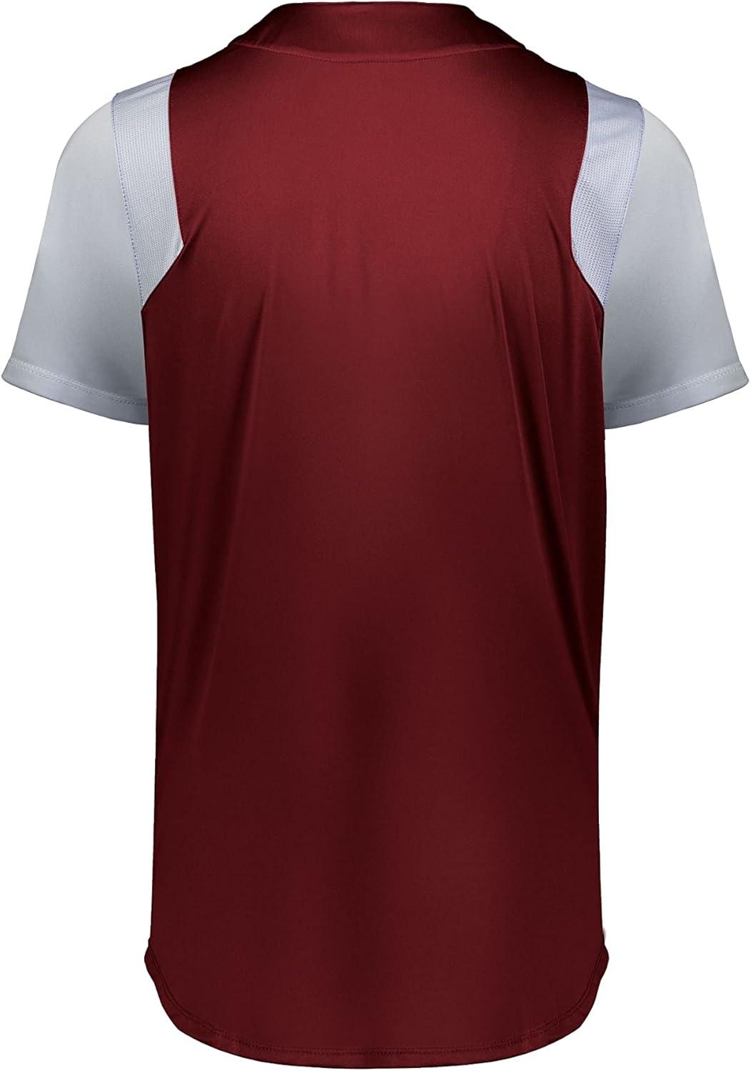 Russell Athletic Womens Women’s V-Neck Softball Jersey – Short Sleeve Moisture-Wicking Tee – Classic Athletic Wear(White/True Red/White)