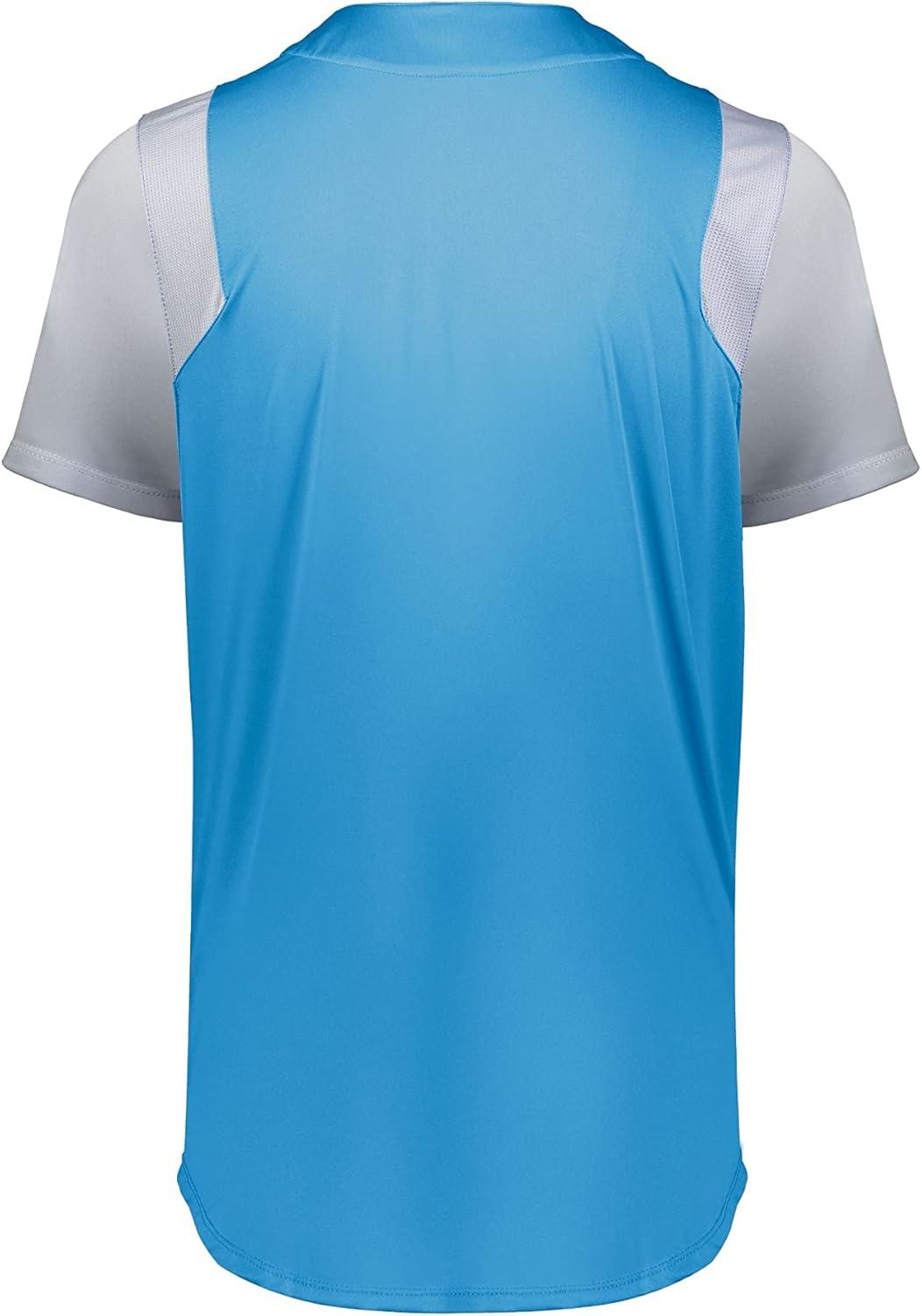 Russell Athletic Womens Women’s V-Neck Softball Jersey – Short Sleeve Moisture-Wicking Tee – Classic Athletic Wear(White/Royal/White)
