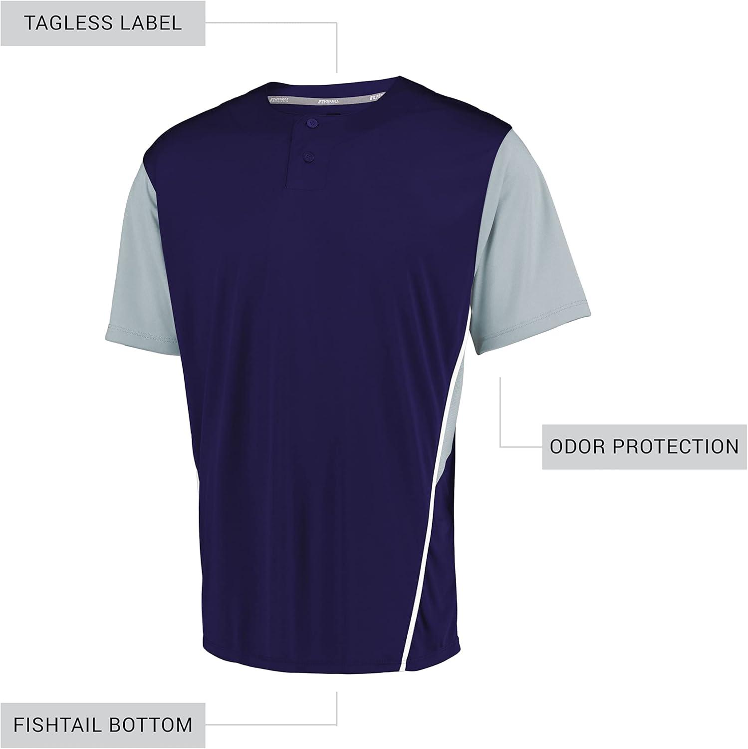 Russell Athletic X-Large Youth Two-Button Placket Baseball Jersey Cool, Stay Dry with Mesh Inserts & Moisture Wicking(Purple/Baseball Grey)