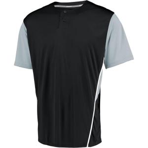 Russell Athletic X-Large Youth Two-Button Placket Baseball Jersey Cool, Stay Dry with Mesh Inserts & Moisture Wicking(Black/Baseball Grey)