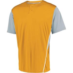 Russell Athletic X-Large Youth Two-Button Placket Baseball Jersey Cool, Stay Dry with Mesh Inserts & Moisture Wicking(Gold/Baseball Grey)