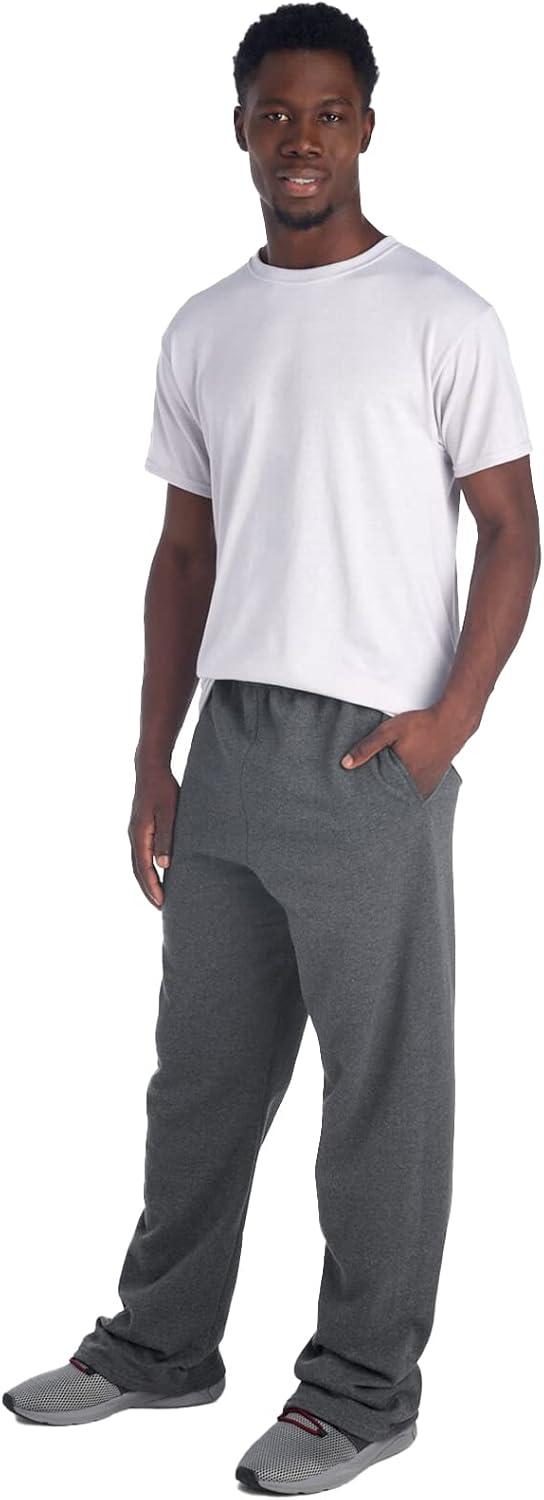 Jerzees Men’s NuBlend Fleece Open Bottom Sweatpants with Pockets, Relaxed Fit, Cotton Blend(Black Heather)