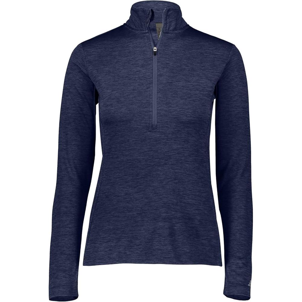 Bring comfort to your workout with the Russell Athletic women's lightweight performance 1/4 zip. The 100 percent poly heathered construction features our patented dri-power moisture wicking technology to keep you dry and light, odor protection to keep you fresh, while stretch fabric provides a greater range of motion. This 1/4 zip will keep you feeling comfortable and looking stylish.
