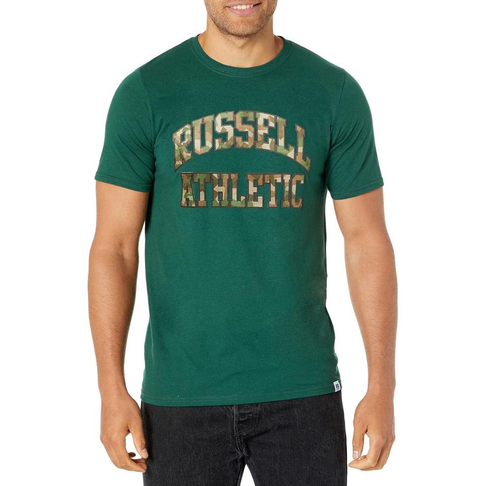 Russell Athletic Men’s Dri-Power Cotton Blend Short Sleeve T-Shirts, Moisture Wicking, Odor Protection, UPF 30+, Sizes S-4X(Dark Green – Felt Camo Arch)