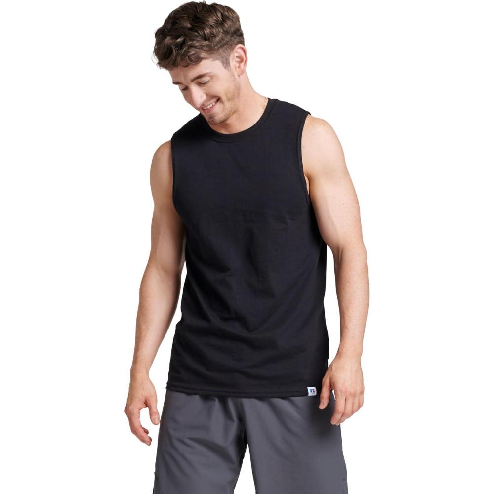 Russell Athletic Men’s Dri-Power Cotton Blend Sleeveless Muscle Shirts, Moisture Wicking Odor Protection UPF 30+, Sizes S-4X(Black)