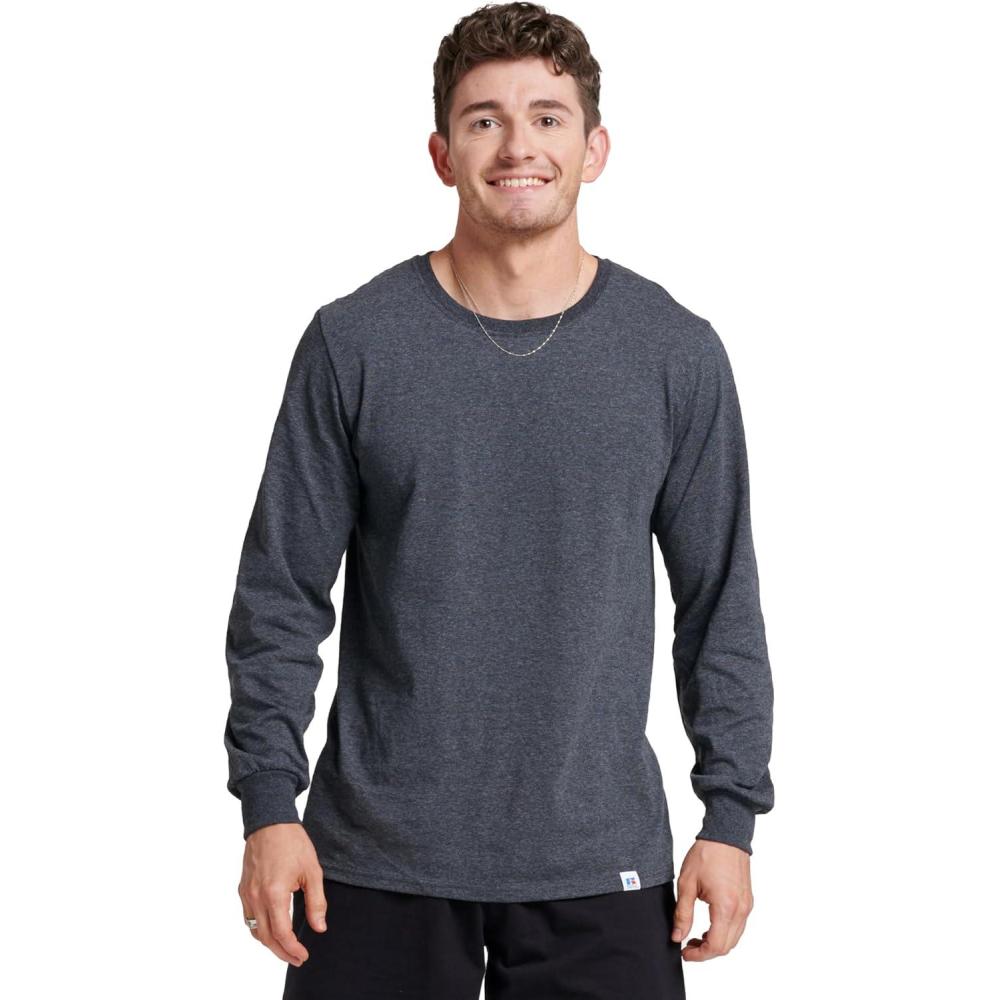 Russell Athletic Men’s Dri-Power Long Sleeve Tees, Moisture Wicking, Odor Protection, UPF 30+(Black Heather)