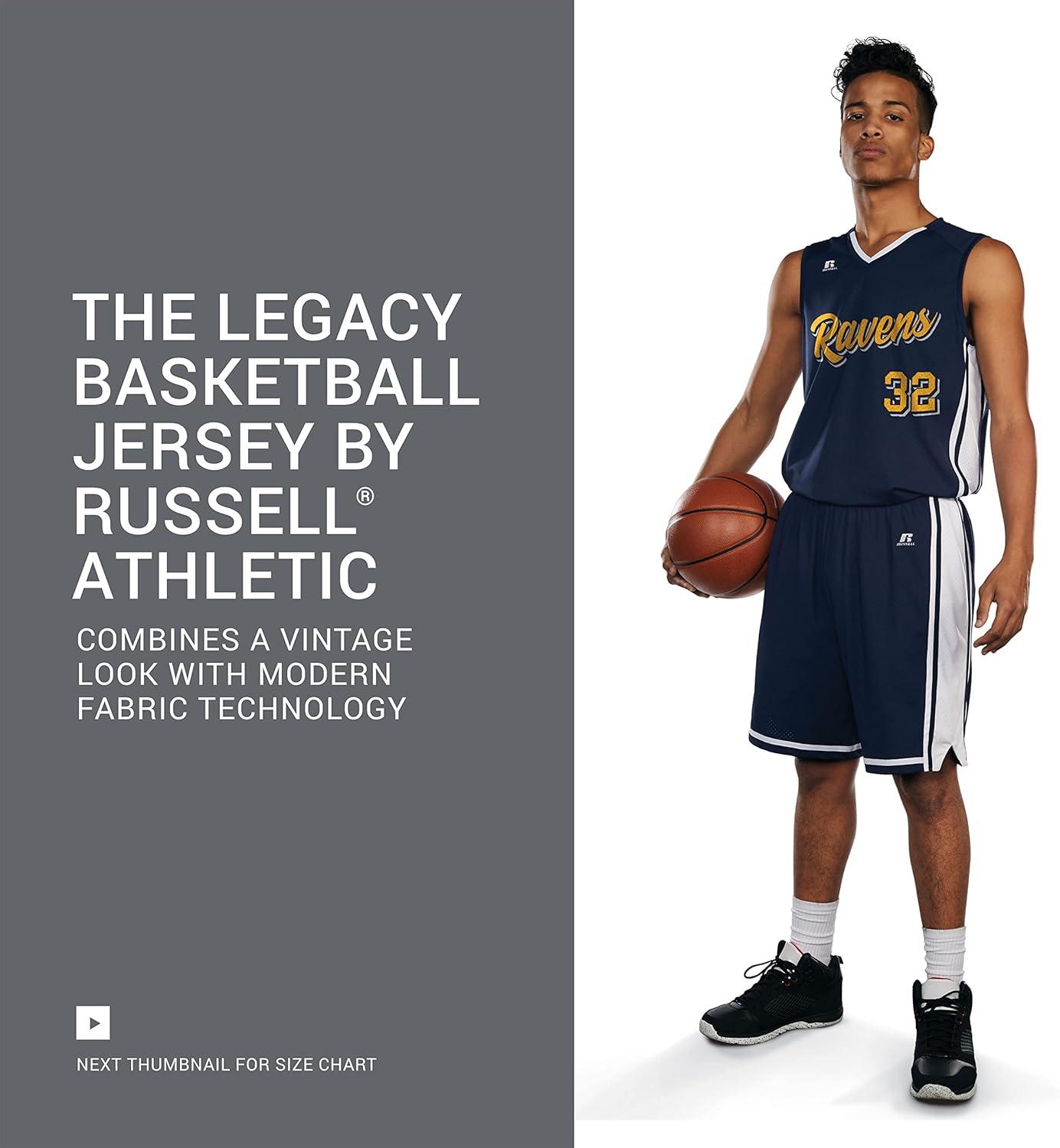 The Legacy Basketball Jersey by Russell Athletic® combines a vintage look with modern fabric technology. It features a retro color block design and 100% polyester wicking mesh with Dri-Power® moisture wicking technology. Respect the past and own the future in this classic jersey.