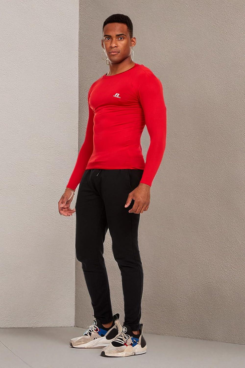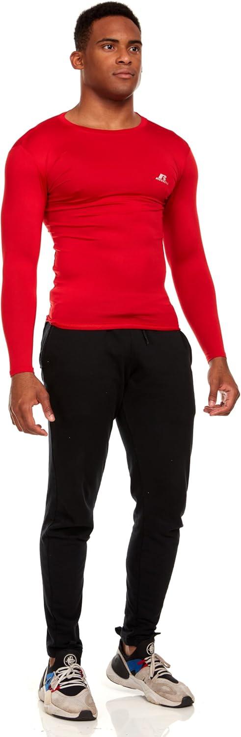 Russell Athletic Men’s Long-Sleeve Compression Top Lightweight Compression Shirts for Men Running Athletic Workout(Red)