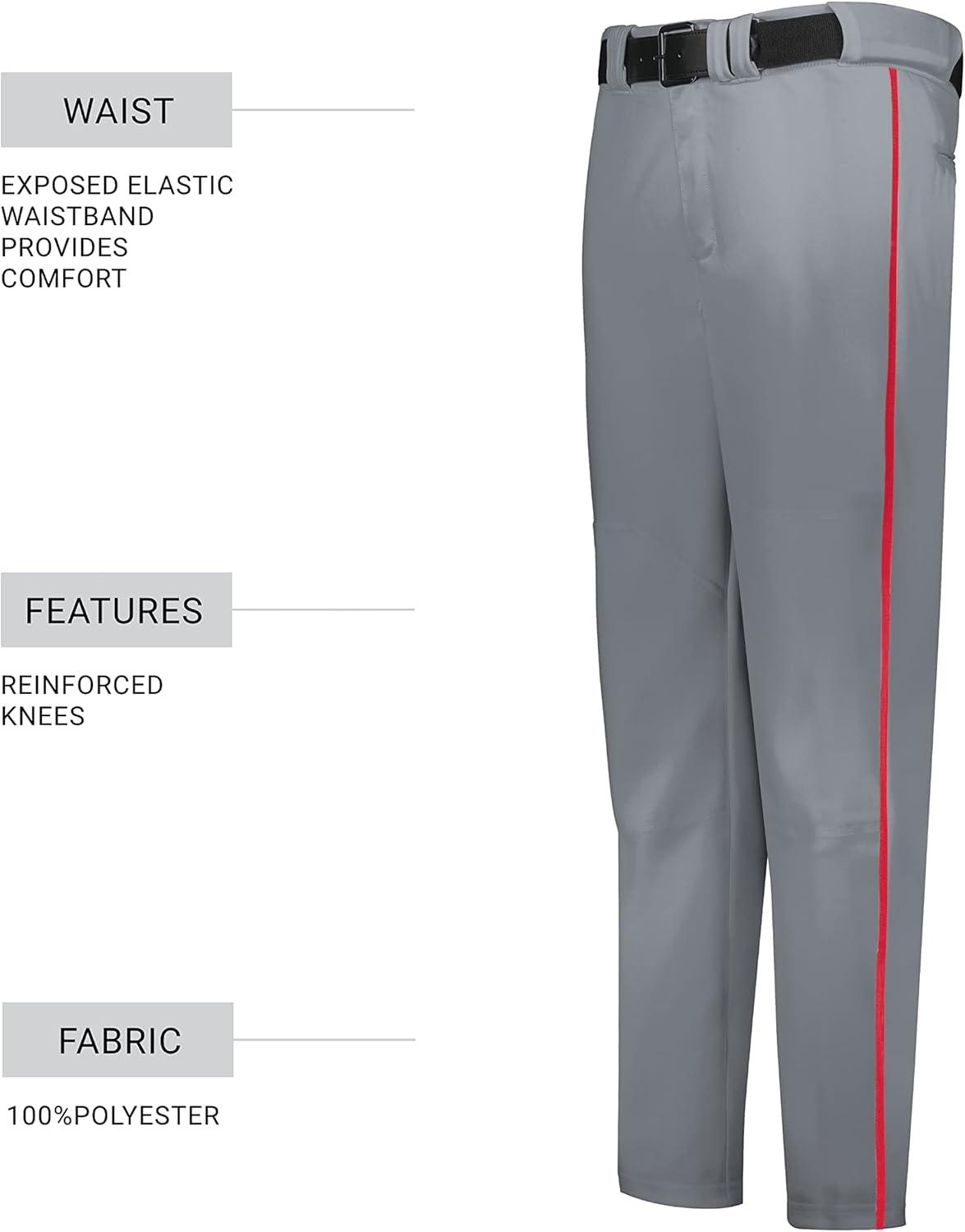 Russell Athletic Piped Change Up Baseball Pant – Comfort and Performance Ideal for Baseball, Softball, and Fastpitch(Baseball Grey/True Red)