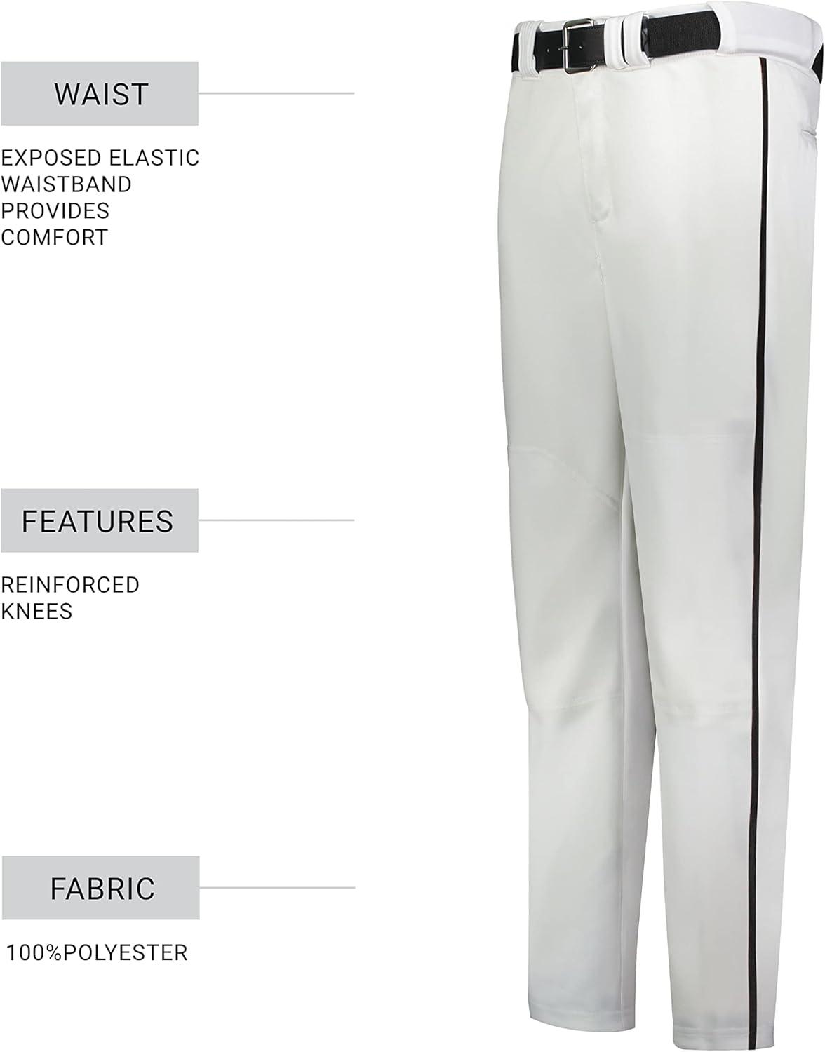 Russell Athletic Piped Change Up Baseball Pant – Comfort and Performance Ideal for Baseball, Softball, and Fastpitch(White/Black)