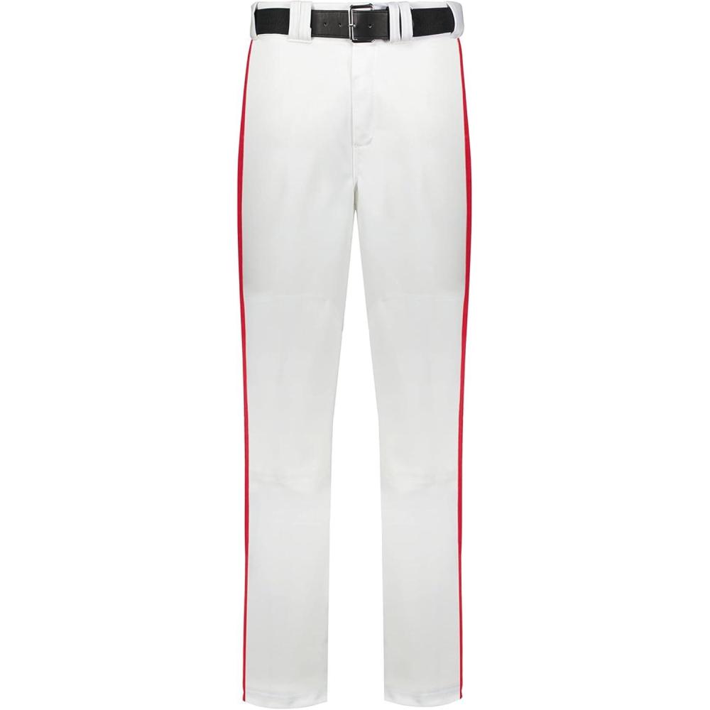 Russell Athletic Piped Change Up Baseball Pant – Comfort and Performance Ideal for Baseball, Softball, and Fastpitch(White/True Red)