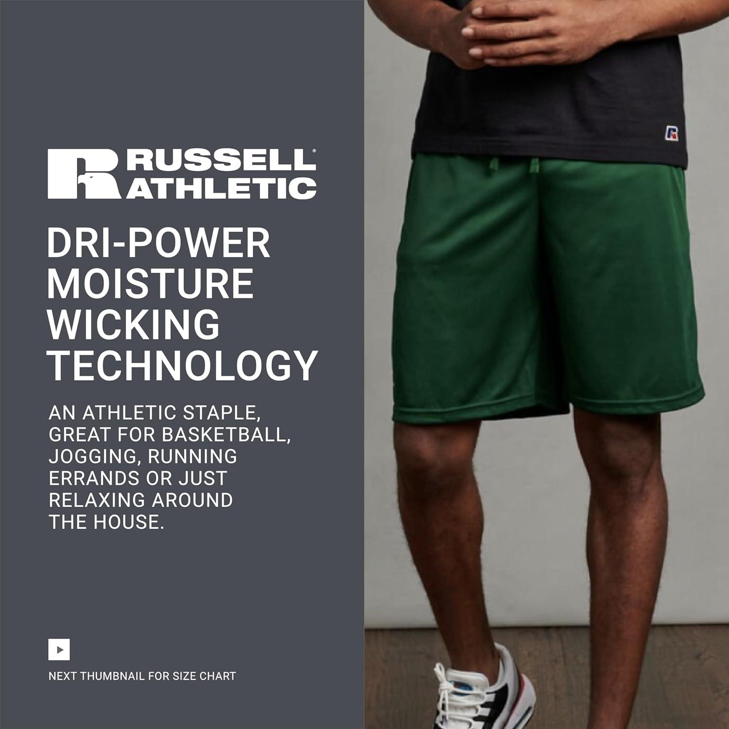 Russell Athletics Men’s Dri Power Essential Performance Shorts with Pocket – Workout and Gym Active Wear(Dark Green)