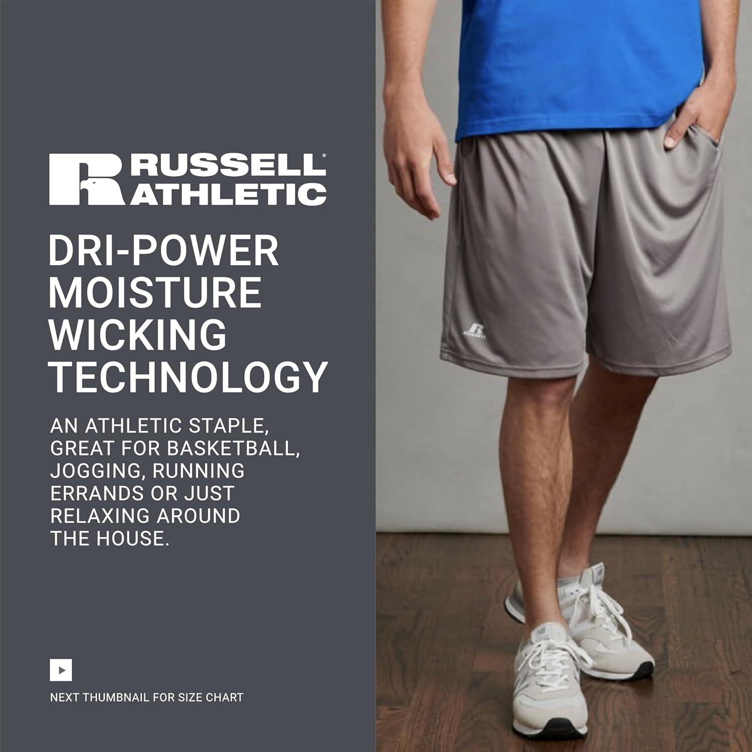 Russell Athletics Men’s Dri Power Essential Performance Shorts with Pocket – Workout and Gym Active Wear(Grey)